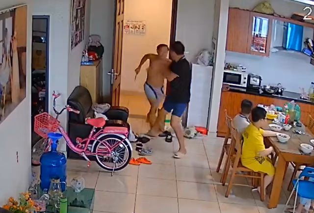 Theo anh L. vào khoảng 7h30 ngày 21/7, trong lúc đang cho con và 3 người cháu ăn sáng thì bất ngờ bị ông H. phòng bên cạnh cầm dao lao vào nhà đâm trực diện. Rất may, anh phản ứng kịp thời tránh được rồi cầm ghế lên chống đỡ, dồn đối tượng ra ngoài đóng cửa phòng lại.
