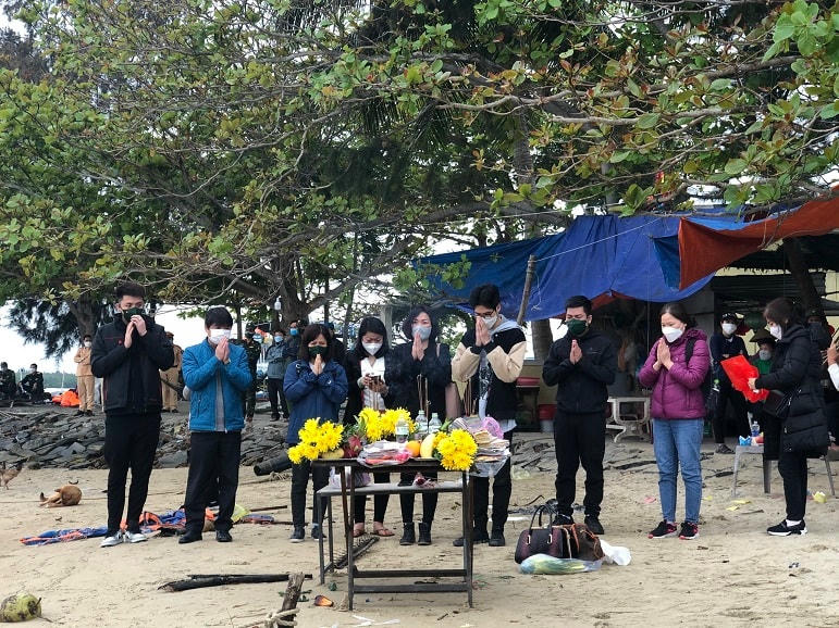 Theo đó, trưa 27/2, người dân TP Hội An và người thân của những nạn nhân xấu số đã lập bàn thờ bên bờ biển, vái vọng vong linh những nạn nhân trong vụ chìm ca nô.