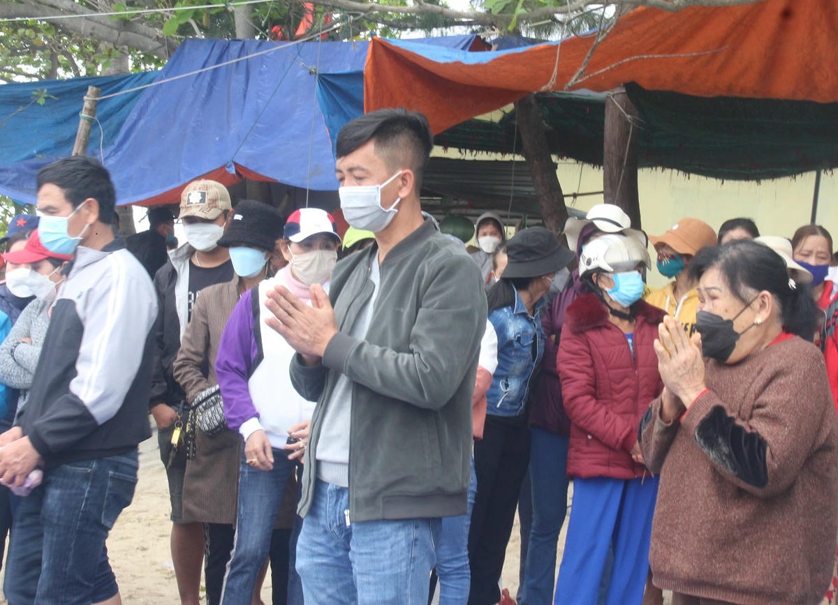 Ghi nhận của phóng viên Đại Đoàn Kết Online, trưa 27/2, người dân phường Cửa Đại vẫn tiếp tục đến bờ biển theo dõi công tác tìm kiếm nạn nhân mất tích, giúp đỡ gia đình, người thân nạn nhân lập bàn thờ tại bãi biển cầu nguyện cho các nạn nhân.