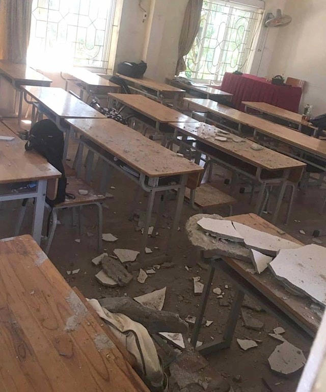 Trước đó, Đại Đoàn Kết Online đã thông tin về vụ việc vữa trần của một phòng học ở Trường THPT Quang Minh (Mê Linh, Hà Nội) rơi, khiến 2 học sinh bị thương. May mắn là các em chỉ bị thương nhẹ, không phải đến bệnh viện, được nhân viên y tế sơ cứu, theo dõi sức khỏe tại nhà và hiện sức khỏe bình thường. Nhà trường đã chuyển lớp học này sang phòng khác.