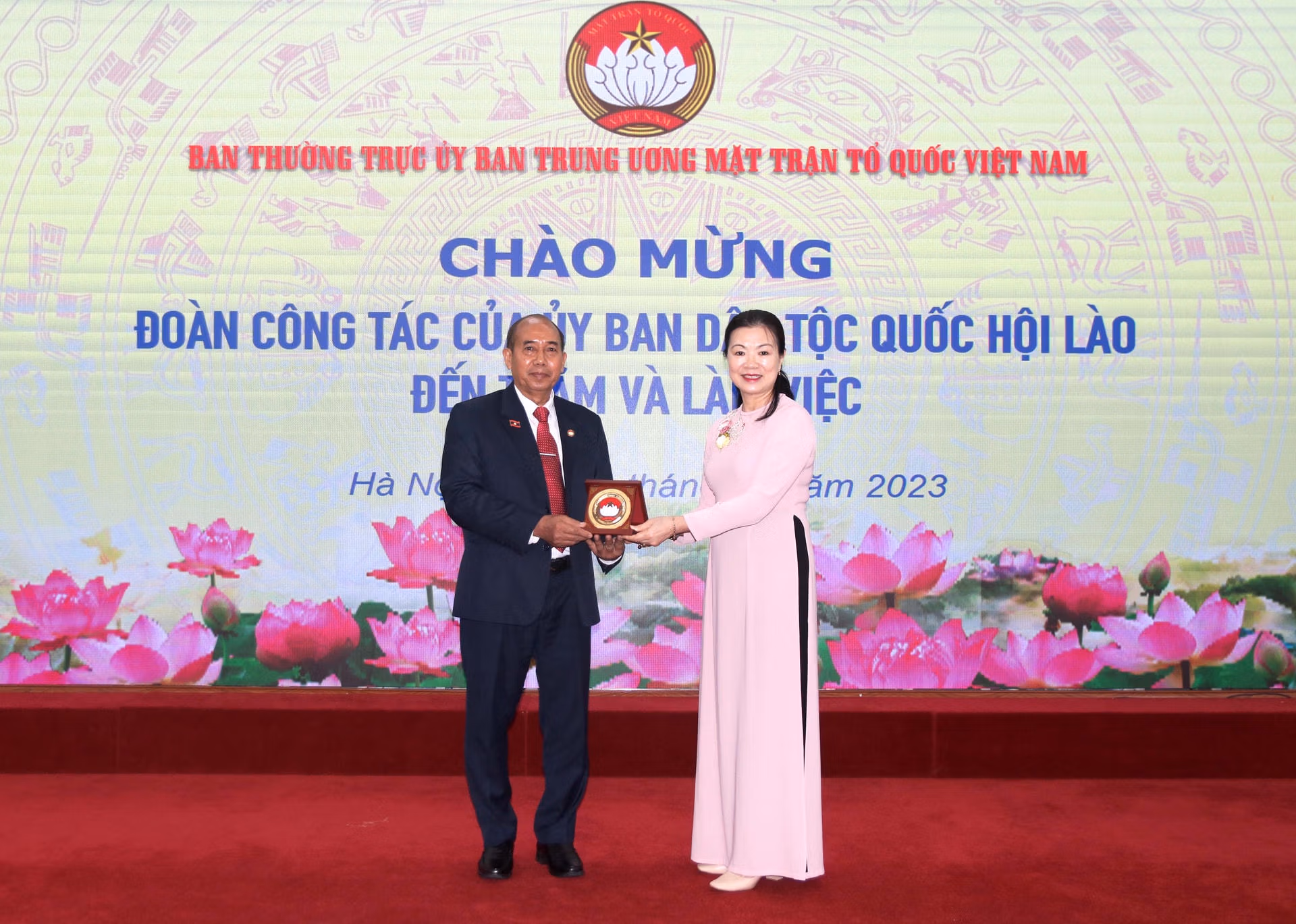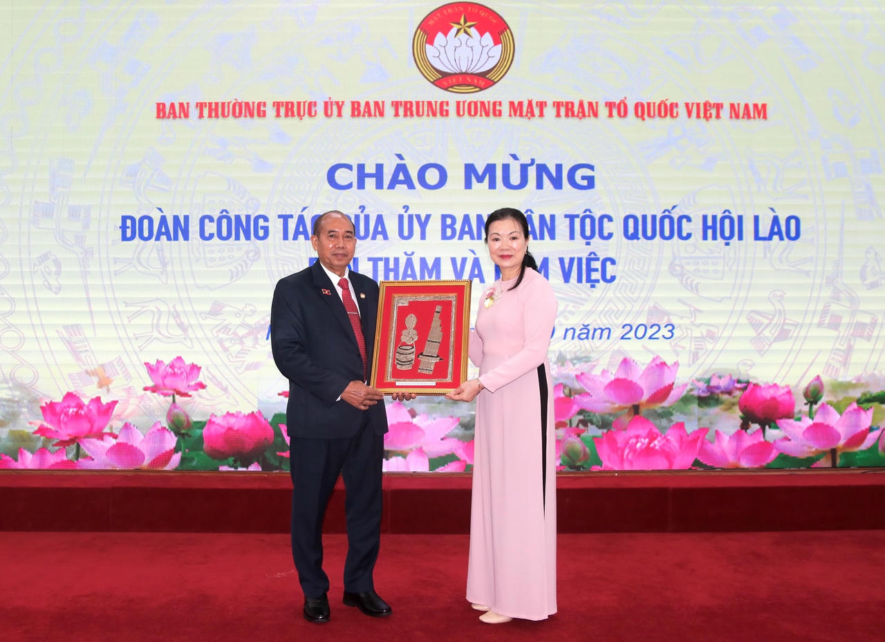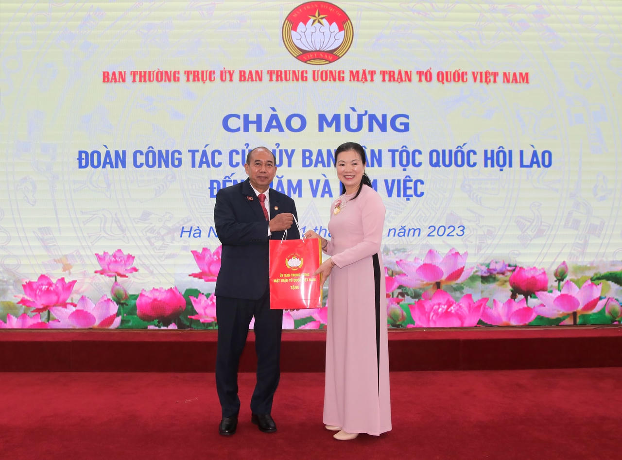 Nhân dịp này, thay mặt Ban Thường trực UBTƯ MTTQ Việt Nam, Phó Chủ tịch Trương Thị Ngọc Ánh gửi lời chúc tốt đẹp nhất đến Đoàn công tác của Ủy ban Dân tộc Quốc hội Lào, chúc đoàn sẽ gặt hái được nhiều thành công, đạt được nhiều kết quả trong chuyến thăm và làm việc tại Việt Nam; đồng thời tin tưởng mối quan hệ giữa Ủy ban Dân tộc Quốc hội Lào và Hội đồng Dân tộc của Quốc hội cũng như UBTƯ MTTQ Việt Nam ngày càng gắn bó chặt chẽ, tình hữu nghị đặc biệt Việt Nam – Lào mãi mãi xanh tươi, đời đời bền vững.
