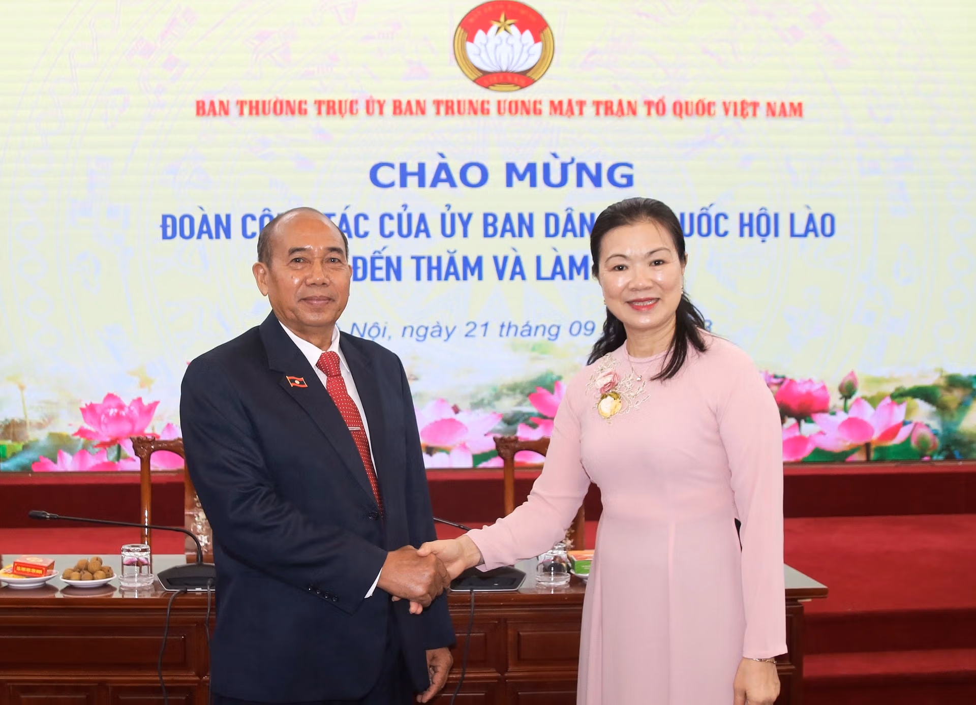 Ngày 21/9, tại Hà Nội, Đoàn công tác của Ủy ban Dân tộc Quốc hội Lào do ông Khamchanh Sotapaserth, Chủ tịch Ủy ban Dân tộc Quốc hội Lào làm Trưởng đoàn đã đến thăm và làm việc tại UBTƯ MTTQ Việt Nam. Bà Trương Thị Ngọc Ánh, Phó Chủ tịch UBTƯ MTTQ Việt Nam chủ trì buổi tiếp đoàn.