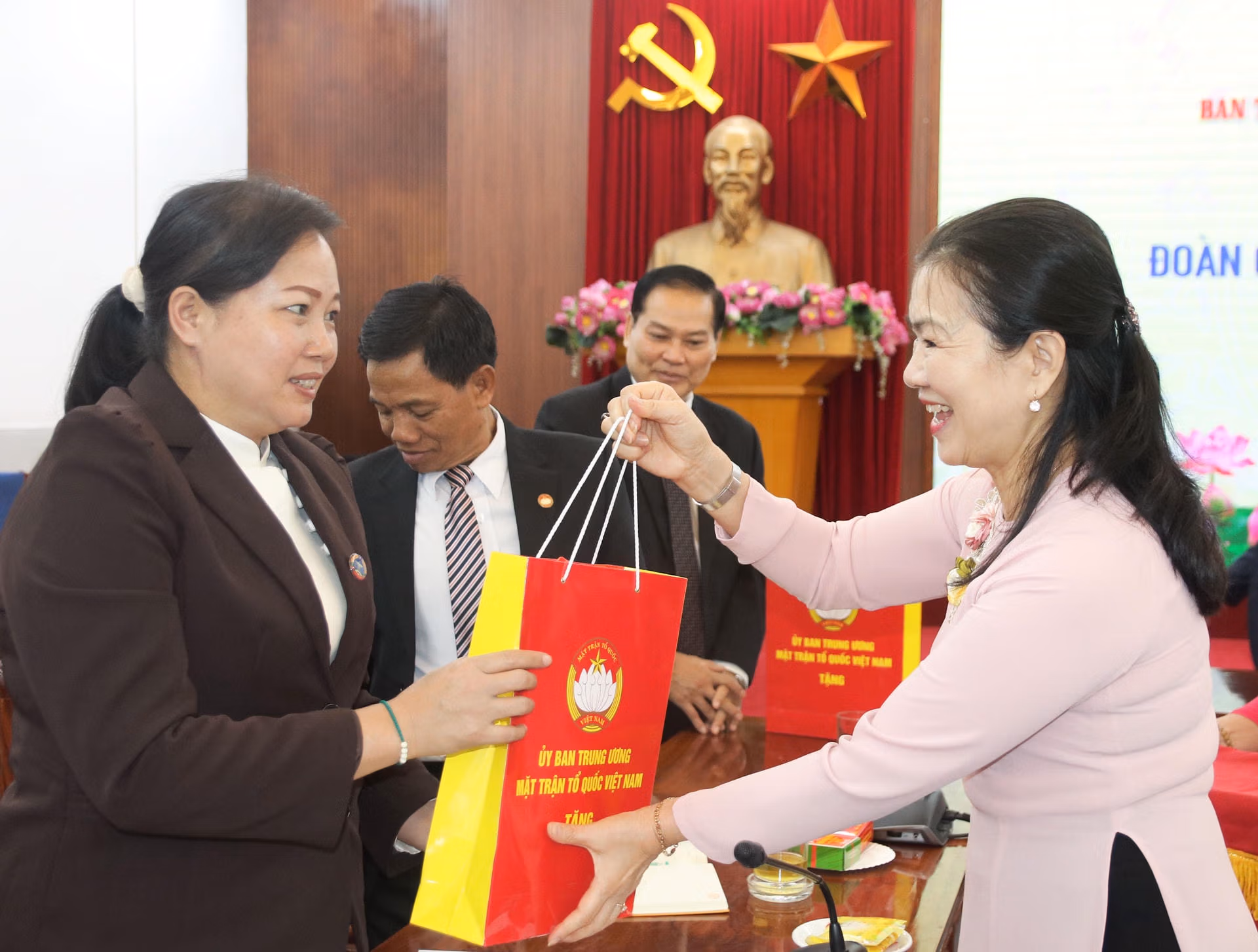 Nhắc tới những thành tích nổi bật của MTTQ Việt Nam đã đạt được trong thời gian qua, ông Khamchanh Sotapaserth nhấn mạnh, MTTQ Việt Nam có vai trò quan trọng trong tập hợp, đoàn kết các tầng lớp nhân dân, thực hiện các mục tiêu phát triển kinh tế - xã hội, giảm nghèo bền vững, nâng cao đời sống nhân dân.