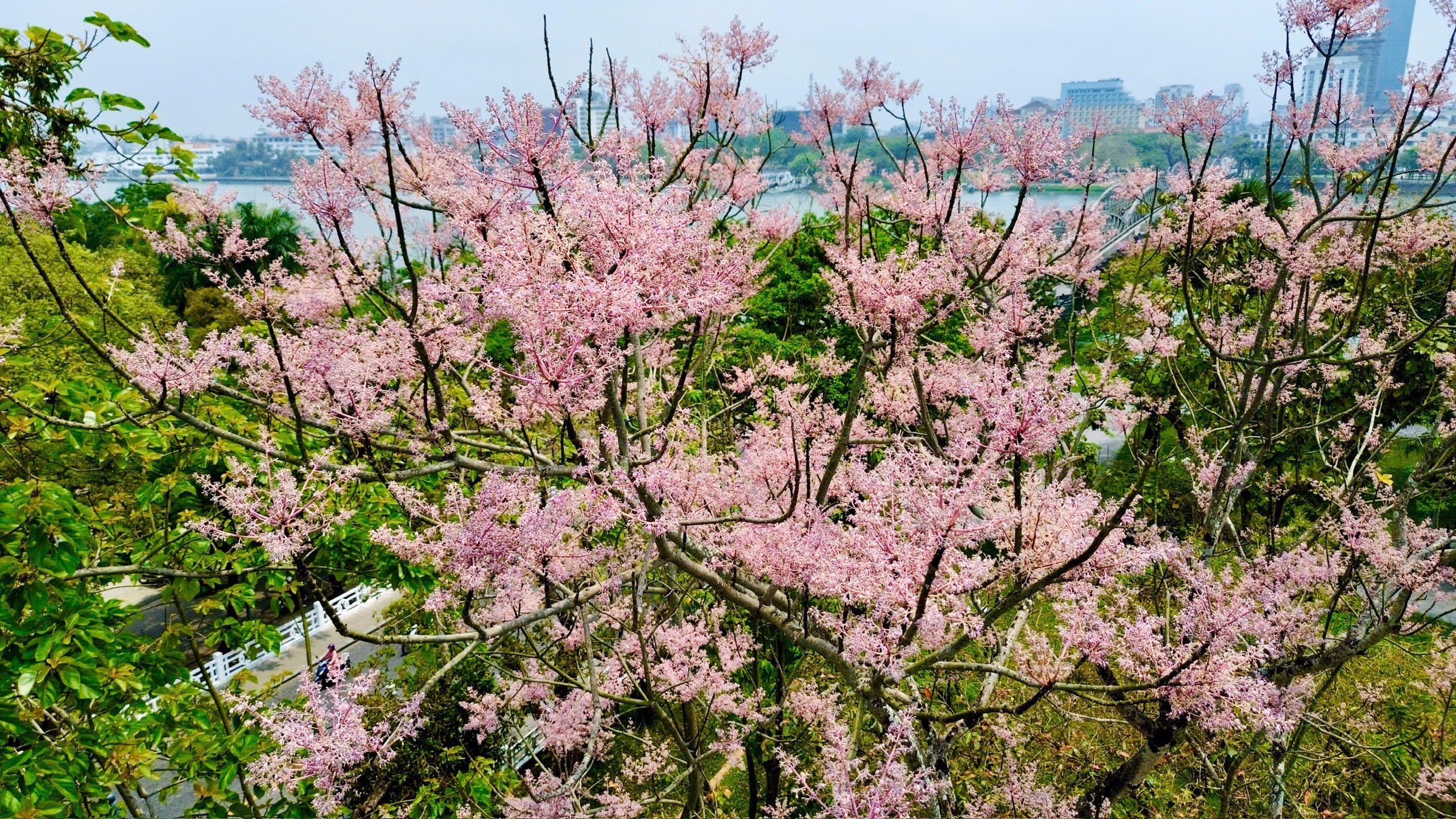 'Vương giả chi hoa' nở rộ trong Hoàng cung Huế Thứ Tư 08/04/2026 09:19 (GMT+7) Những ngày này, hoa ngô đồng trong Hoàng cung Huế đua nhau khoe sắc, tạo nên một không gian vừa cổ kính vừa thơ mộng, khiến du khách vô cùng thích thú. Cứ mỗi độ tháng 4 về chính là lúc cây ngô đồng trong Hoàng cung Huế và bên bờ sông Hương bắt đầu khoe sắc. Ảnh: T.N.Video: Hoa ngô đồng nở rộ trong Hoàng cung Huế.Sau khi trút bỏ hết lá, cây ngô đồng hiện lên với những chùm hoa nhỏ li ti, phủ sắc hồng dịu dàng, tạo nên vẻ đẹp kiêu sa và đầy mê hoặc. Ảnh: T.N.Sắc hồng của hoa ngô đồng làm nổi bật thêm vẻ đẹp cổ kính vốn có của Kinh thành Huế. Ảnh: T.N.Hoa ngô đồng thuộc loại "vương giả chi hoa", là một trong 9 loài cây hoa được vua Minh Mạng cho khắc vào Cửu đỉnh tượng trưng vương quyền và được trồng nhiều bên trong Hoàng cung Huế. Ảnh: T.N.Sắc hồng dịu dàng của hoa ngô đồng không chỉ làm mê đắm biết bao du khách mà còn góp phần tô điểm thêm cho vẻ đẹp cổ kính của Kinh thành Huế. Ảnh: T.N.Chị Nguyễn Thị Quỳnh Trang (du khách đến từ tỉnh Quảng Trị) cho biết, rất ngỡ ngàng trước vẻ đẹp dịu dàng nhưng đầy kiêu sa của hoa ngô đồng. “Trước vẻ đẹp đầy mê hoặc lòng người, tôi cũng đã kịp lưu lại những tấm hình đẹp bên cạnh cây ngô đồng ở Hoàng cung Huế để làm kỷ niệm”, chị Trang chia sẻ. Ảnh: T.N.Ngoài Hoàng cung Huế, nhiều cây ngô đồng bên bờ sông Hương cũng đang nở rộ tạo nên không gian đầy thơ mộng. Ảnh: T.N.ThS. Nguyễn Anh Tuấn, Hội Khoa học Lịch sử thành phố Huế cho biết, hoa ngô đồng được xem là loài hoa mang khí chất vương giả, biểu trưng cho sự cao quý của bậc đế vương. Trong quan niệm dân gian, chim Phượng Hoàng chỉ đậu trên cây ngô đồng, loài cây tượng trưng cho điềm lành, phú quý và sự hưng thịnh. Ảnh: T.N.Theo ThS. Nguyễn Anh Tuấn, để khẳng định vị thế tôn quý của loài cây này, vua Minh Mạng cho khắc hình tượng cây hoa ngô đồng lên Nhân Đỉnh, một trong chín đỉnh đồng lớn đặt trong Hoàng thành. Khi bắt đầu nở hoa, những chùm hoa li ti, mong manh nhưng lại tạo nên vẻ đẹp kiêu sa, khiến bao người say đắm. Ảnh: T.N. Nguyễn Quốc