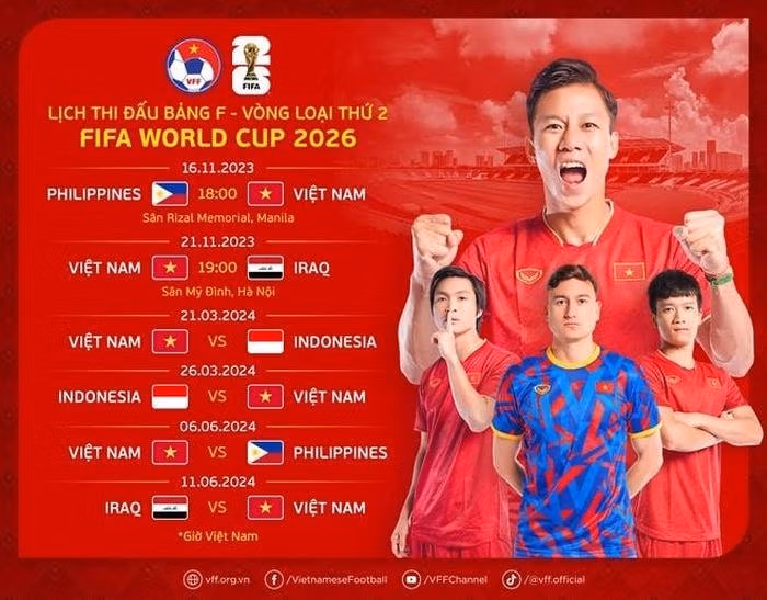 Theo đó, đội tuyển Việt Nam sẽ mở màn vòng loại World Cup 2026 với trận đấu với Philippines. Trận đấu này diễn ra vào lúc 18h00 ngày 16/11 tại sân vận động Rizal Memorial (Manila, Philippines).