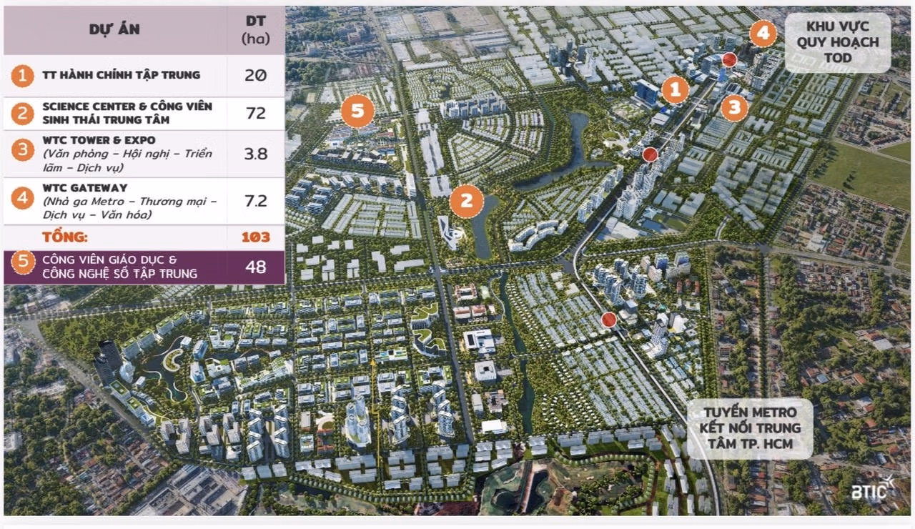 Giới thiệu về Đề án, ông Nguyễn Hoàn Vũ - Tổng Giám đốc Tập đoàn Becamex cho hay, đô thị Khoa học Công nghệ – Bắc TP Hồ Chí Minh được tổ chức không gian phát triển theo cấu trúc tích hợp gồm: Trung tâm phát triển khoa học công nghệ với quy mô khoảng 103 ha, cùng với 220 ha cơ sở vật chất nghiên cứu phát triển, sản xuất công nghệ cao, thử nghiệm quy mô nhỏ tạo thành vùng lõi đầu não đổi mới sáng tạo tập trung tại phường Bình Dương, giữ vai trò là điểm khởi phát mang tính chiến lược của toàn bộ hệ sinh thái. Trung tâm đang được triển khai theo từng giai đoạn, từng bước hình thành không gian hội tụ các hoạt động khoa học công nghệ, giáo dục đào tạo, đổi mới sáng tạo, qua đó đóng vai trò dẫn dắt và lan tỏa cho toàn bộ Đô thị khoa học công nghệ Bắc TP Hồ Chí Minh.