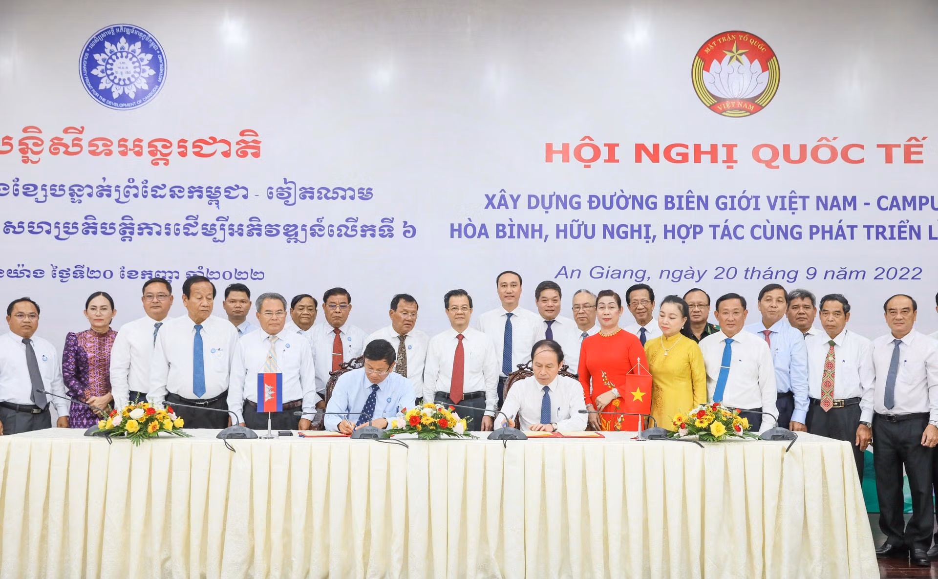Ngày 20/9, tại tỉnh An Giang, UBTƯ MTTQ Việt Nam và Hội đồng Quốc gia Mặt trận Đoàn kết Phát triển Tổ quốc Campuchia phối hợp tổ chức Hội nghị quốc tế Xây dựng đường biên giới Việt Nam-Campuchia hòa bình, hữu nghị, hợp tác cùng phát triển lần thứ 6, giai đoạn 2022-2025.