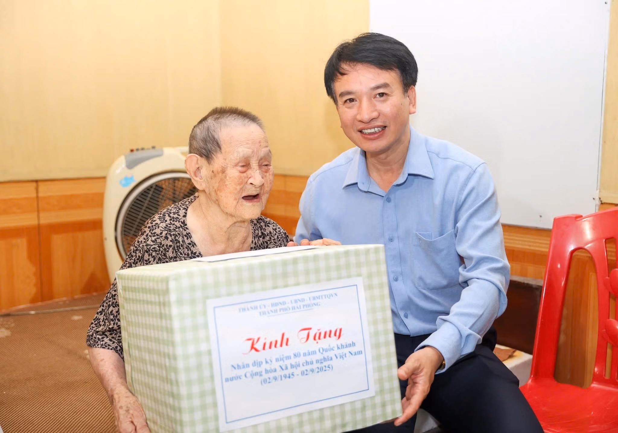 Ông Nguyễn Đức Tuấn thăm, tặng quà Mẹ Việt Nam Anh hùng Nguyễn Thị Ót. Ảnh: PT.