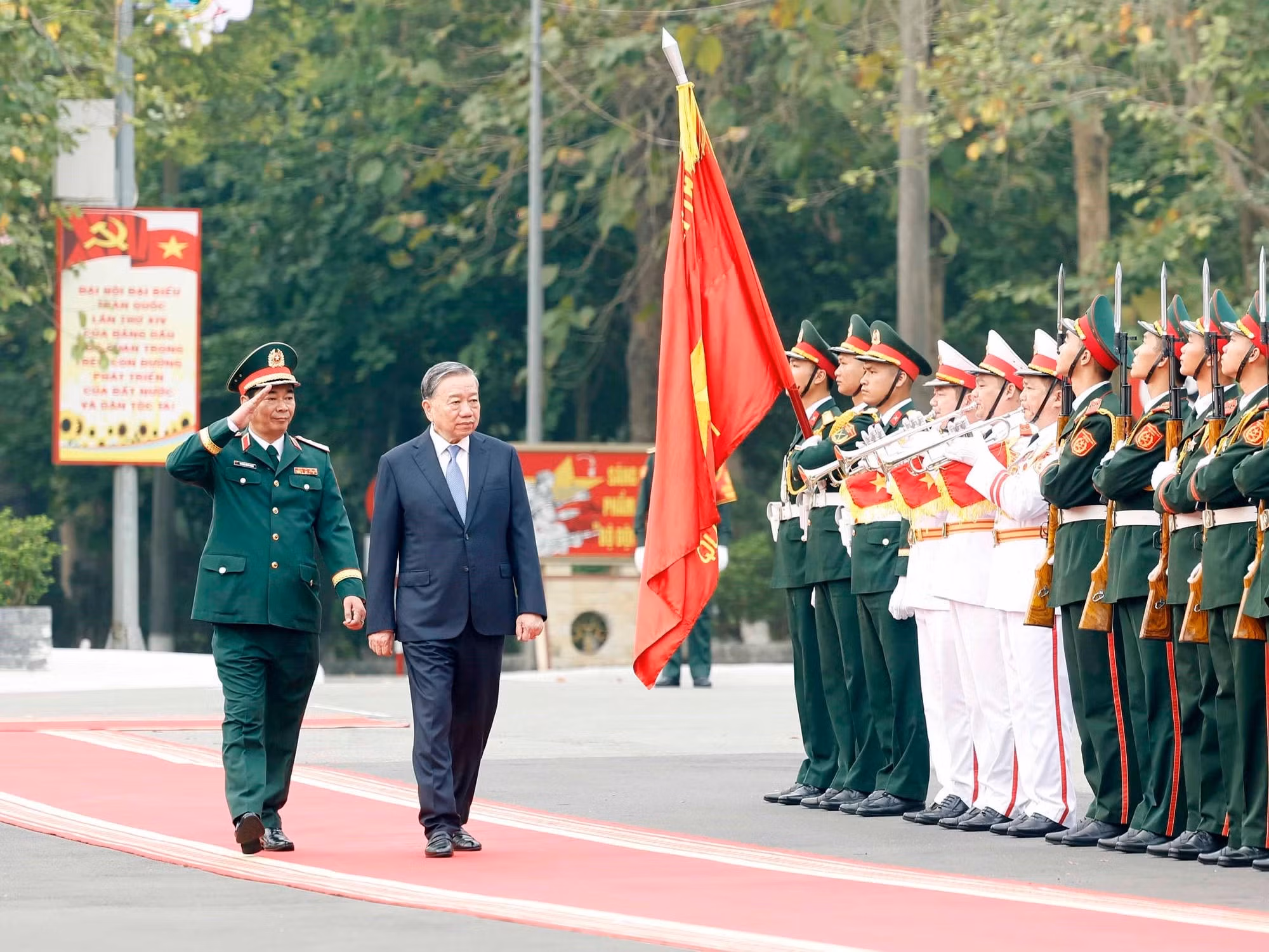 Tổng Bí thư, Chủ tịch nước yêu cầu xây dựng lực lượng vũ trang Quân khu vững mạnh toàn diện, trước hết là vững mạnh về chính trị; tiếp tục xây dựng lực lượng theo hướng tinh, gọn, mạnh, cách mạng, chính quy, tinh nhuệ, hiện đại. Quân khu 1 cần nâng cao chất lượng huấn luyện, diễn tập, trình độ chỉ huy, hiệp đồng tác chiến, khả năng cơ động và sức chiến đấu. Chủ động nghiên cứu, ứng dụng khoa học, công nghệ, chuyển đổi số, sáng kiến cải tiến kỹ thuật; nâng cao năng lực bảo đảm trong điều kiện chiến đấu mới, trong phòng thủ dân sự, trong tìm kiếm cứu nạn, cứu hộ và ứng phó thiên tai, dịch bệnh. Bảo đảm tốt hậu cần, kỹ thuật, tài chính, thông tin, trang bị cho mọi nhiệm vụ thường xuyên và đột xuất; chăm lo tốt hơn đời sống vật chất và tinh thần của bộ đội.