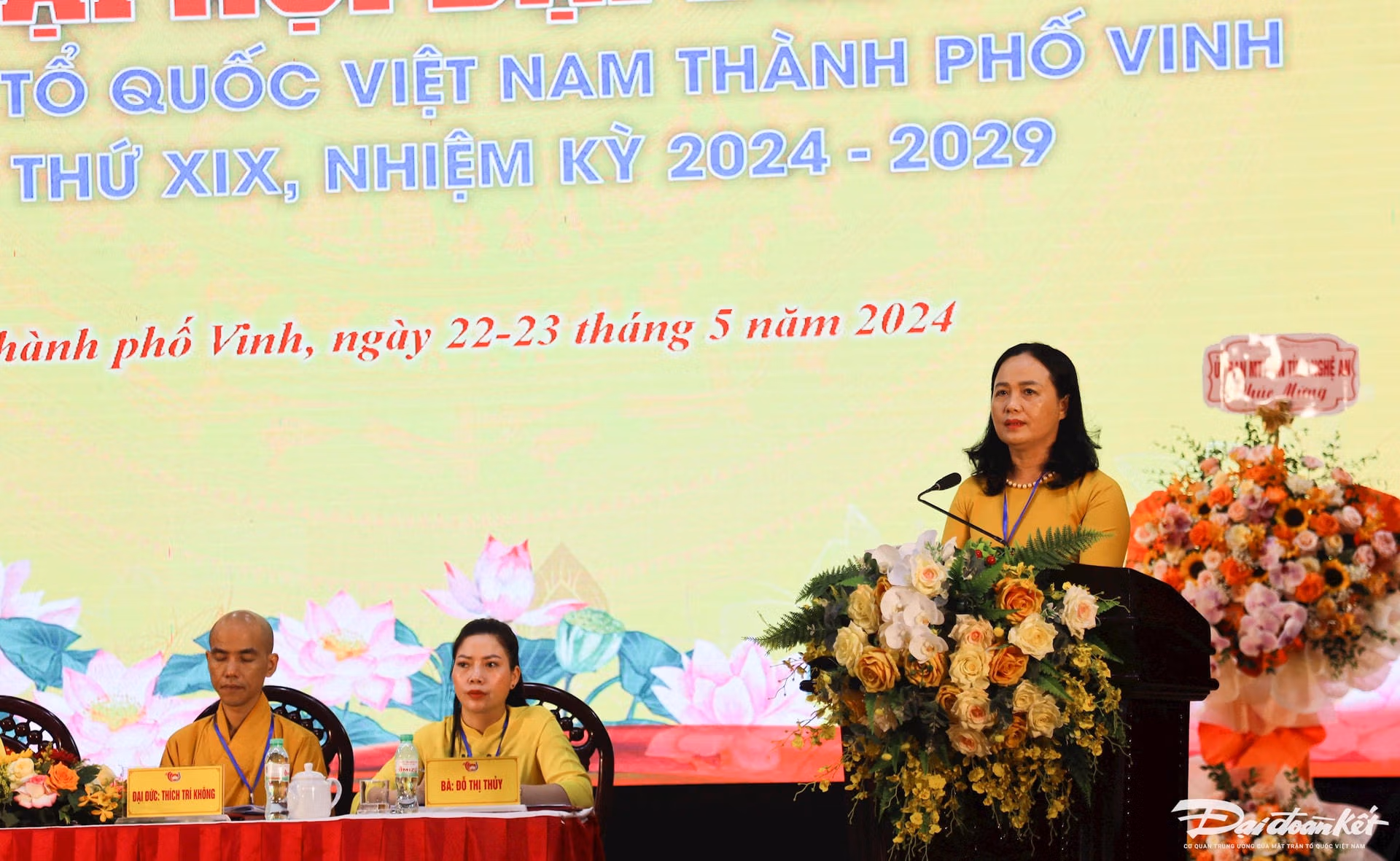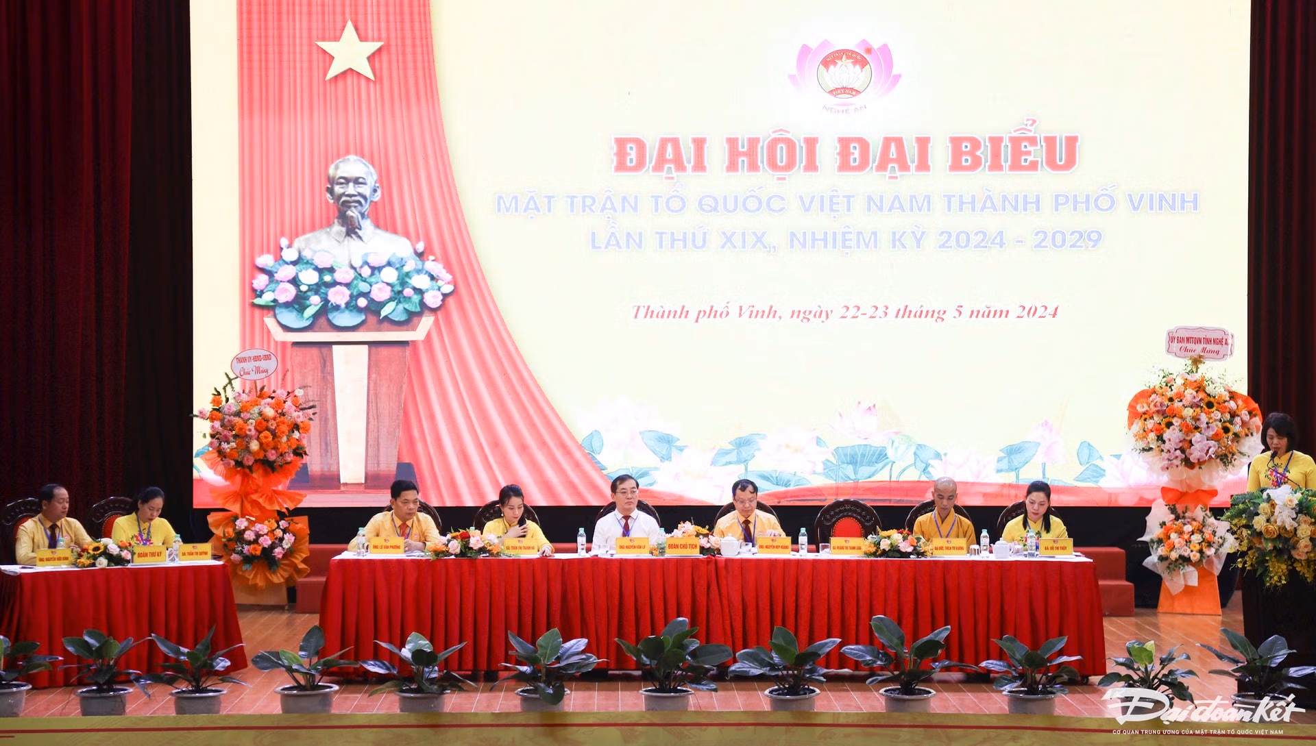 Phát biểu tại đại hội, đại diện lãnh đạo Ủy ban MTTQ tỉnh Nghệ An, lãnh đạo Thành ủy TP Vinh đã đánh giá cao kết quả đạt được của MTTQ các cấp TP Vinh trong nhiệm kỳ qua. Đồng thời, mong muốn trong nhiệm kỳ tới, MTTQ các cấp TP Vinh tiếp tục thực hiện hiệu quả các chương trình hành động của mình.