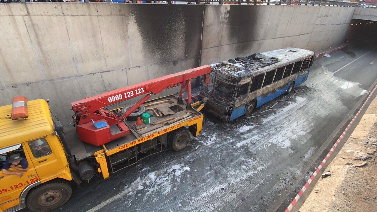 Sáng nay, 24/2, một chiếc xe buýt khi về tới hầm chui ngã tư An Sương, Quận 12, TP HCM bất ngờ bốc cháy ngùn ngụt rồi bị thiêu rụi sau đó. Giao thông khu vực này ùn tắc nghiêm trọng.