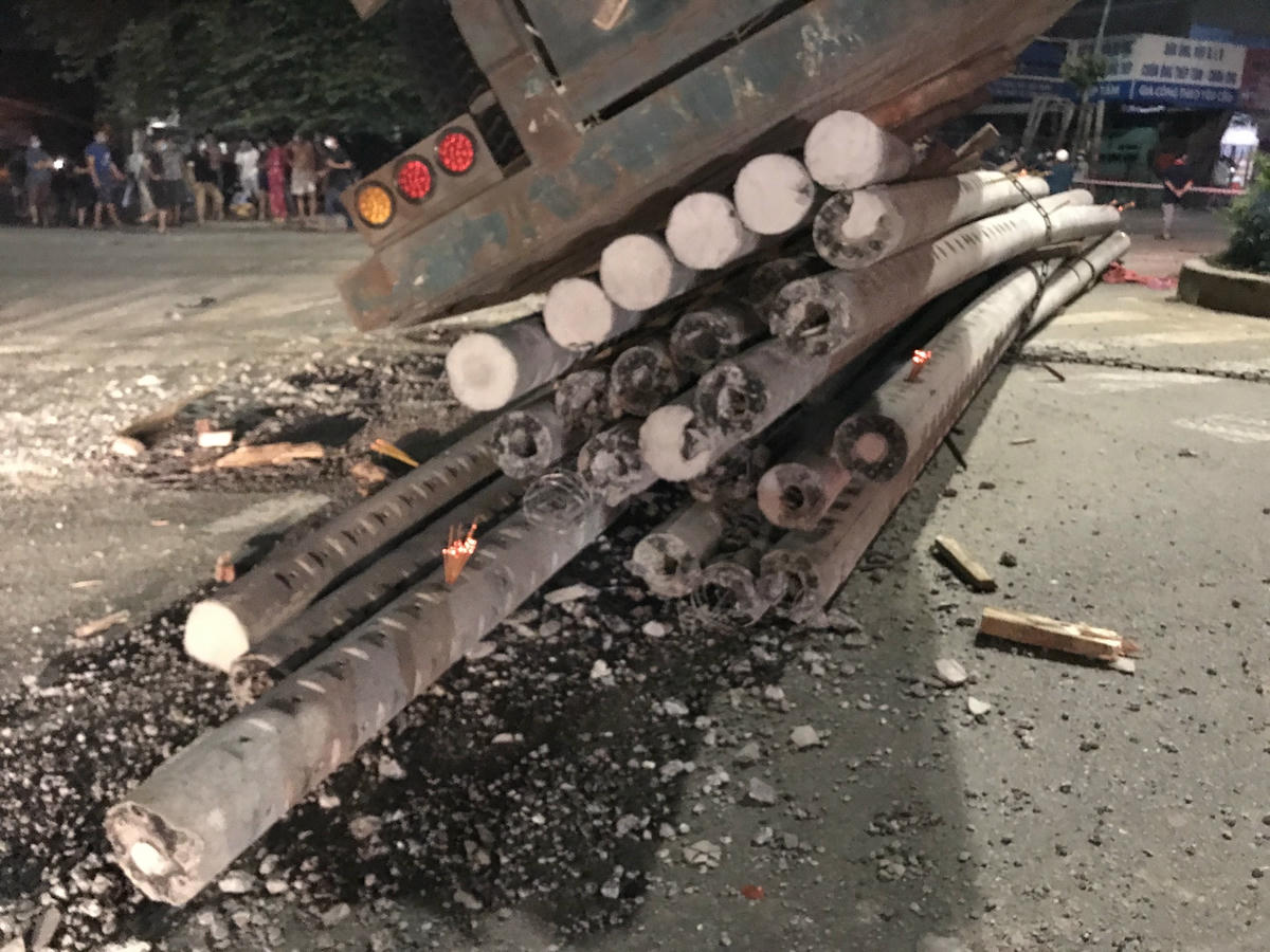 Theo đó, khoảng 22h10 khuya 26/6, xe container chở cột điện bê tông chạy trên đường Mỹ Phước Tân Vạn hướng An Phú đi quốc lộ 1K.