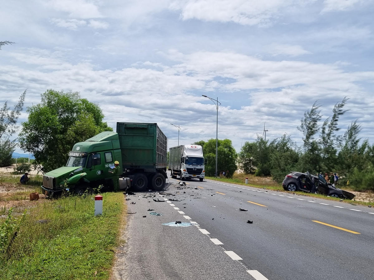 Như đã đưa tin, vào khoảng 12h ngày 4/7, tại Km 685+550m đường tránh lũ BOT thuộc thôn Thạch Hạ (xã Hồng Thuỷ, huyện Lệ Thuỷ) xe ô tô 7 chỗ mang BKS 38A-144.35 do ông Nguyễn Hùng C. (53 tuổi, trú tại xã Thạch Kim huyện Thạch Hà, tỉnh Hà Tĩnh) điều khiển lưu thông theo hướng Nam - Bắc thì bất ngờ va chạm với xe đầu kéo mang BKS 76C-060.49 kéo theo rơ moóc BKS 76R-002.09 lưu thông theo hướng ngược lại.