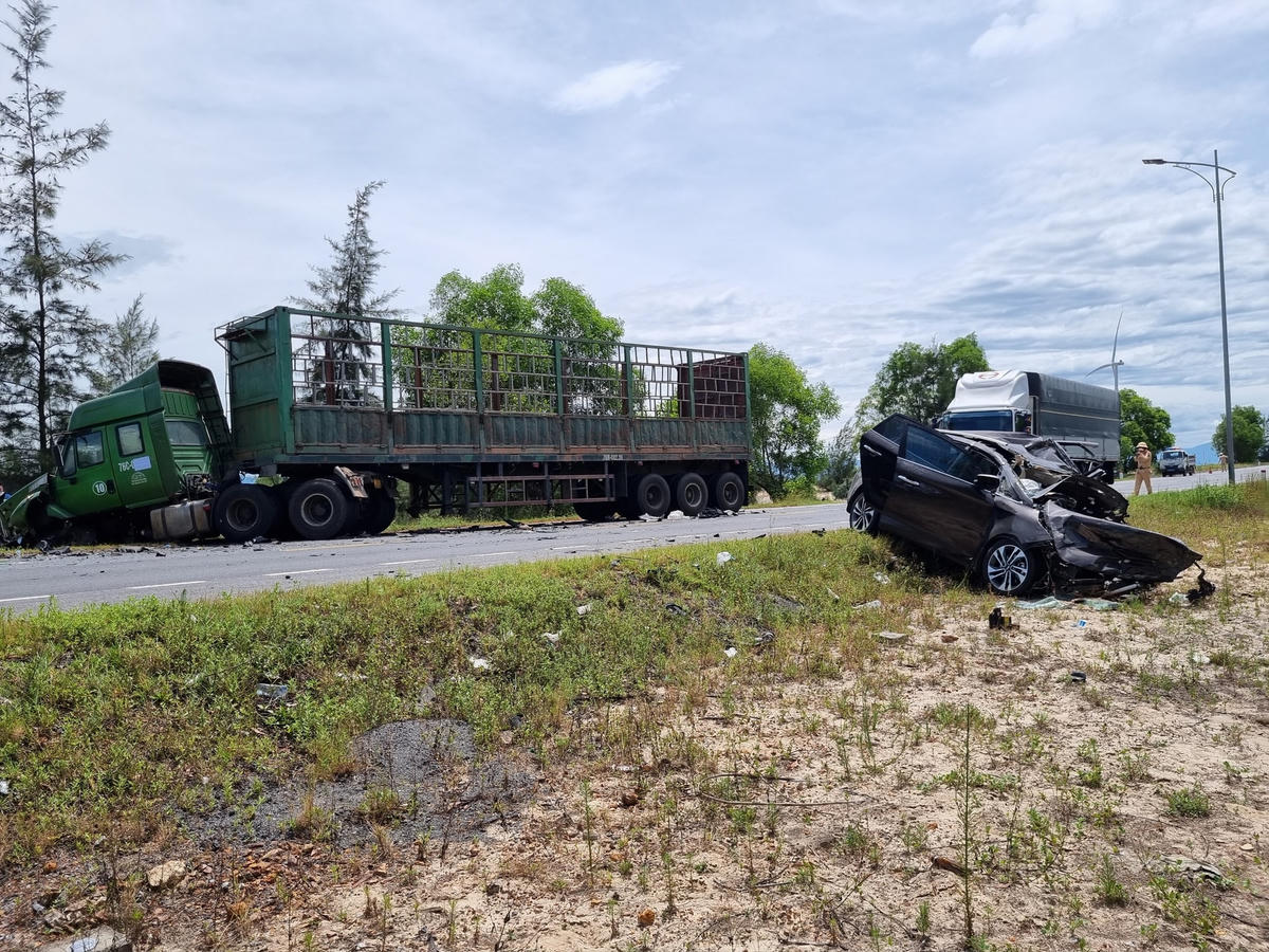 Như đã đưa tin, vào khoảng 12h ngày 4/7, tại tuyến đường tránh qua địa phận xã Hồng Thủy (huyện Lệ Thủy) xe ô tô 7 chỗ mang BKS 38A-144.35 đang lưu thông theo hướng Nam - Bắc thì bất ngờ va chạm với xe đầu kéo BKS 76C-060.49 kéo theo rơ moóc BKS 76R-002.09 đang lưu thông theo hướng ngược lại.
