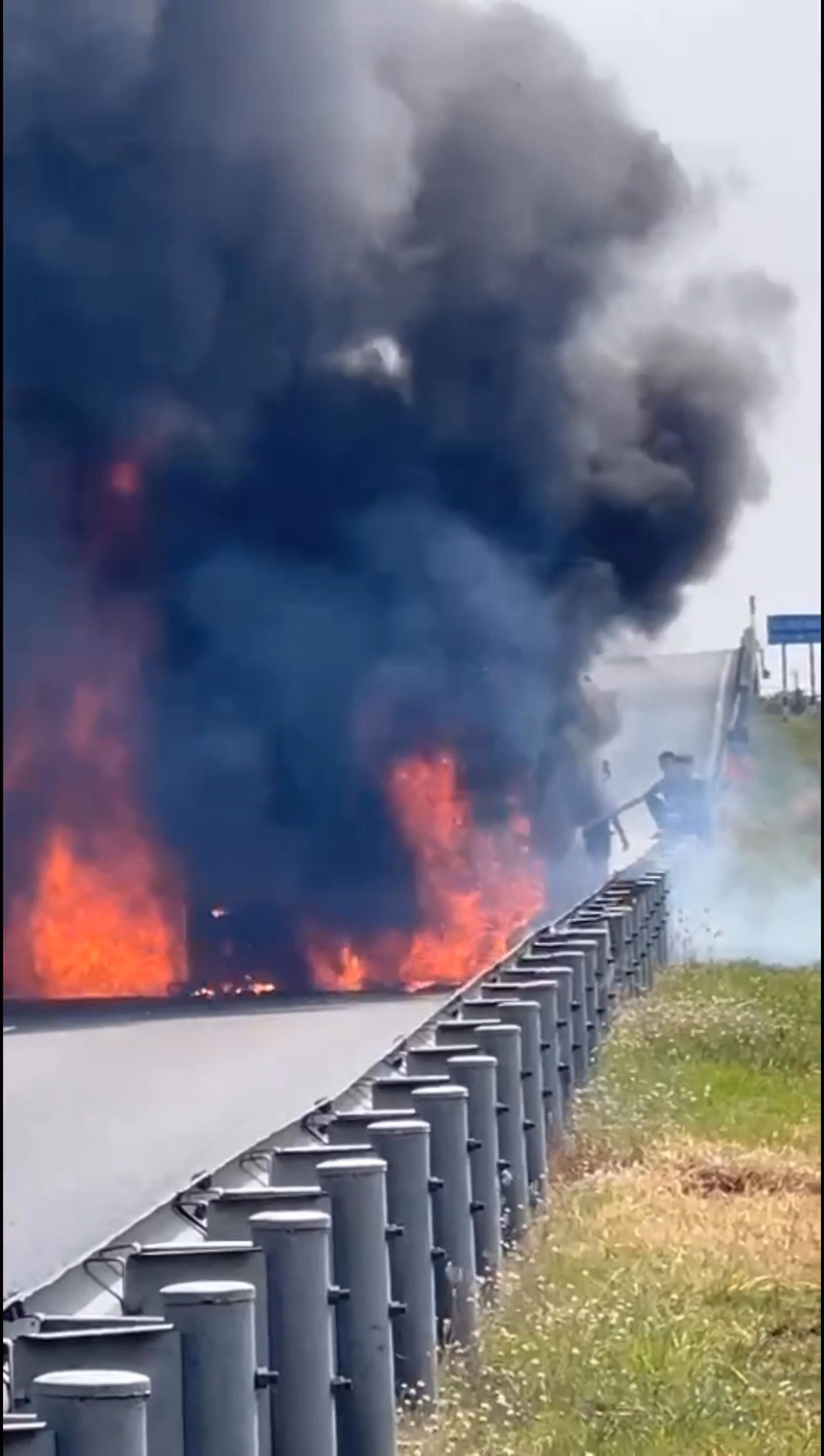 Nhận tin báo, lực lượng cảnh sát giao thông cùng đơn vị quản lý tuyến cao tốc đã khẩn trương có mặt, phối hợp chữa cháy, đồng thời tổ chức phân luồng, điều tiết phương tiện nhằm đảm bảo an toàn giao thông.