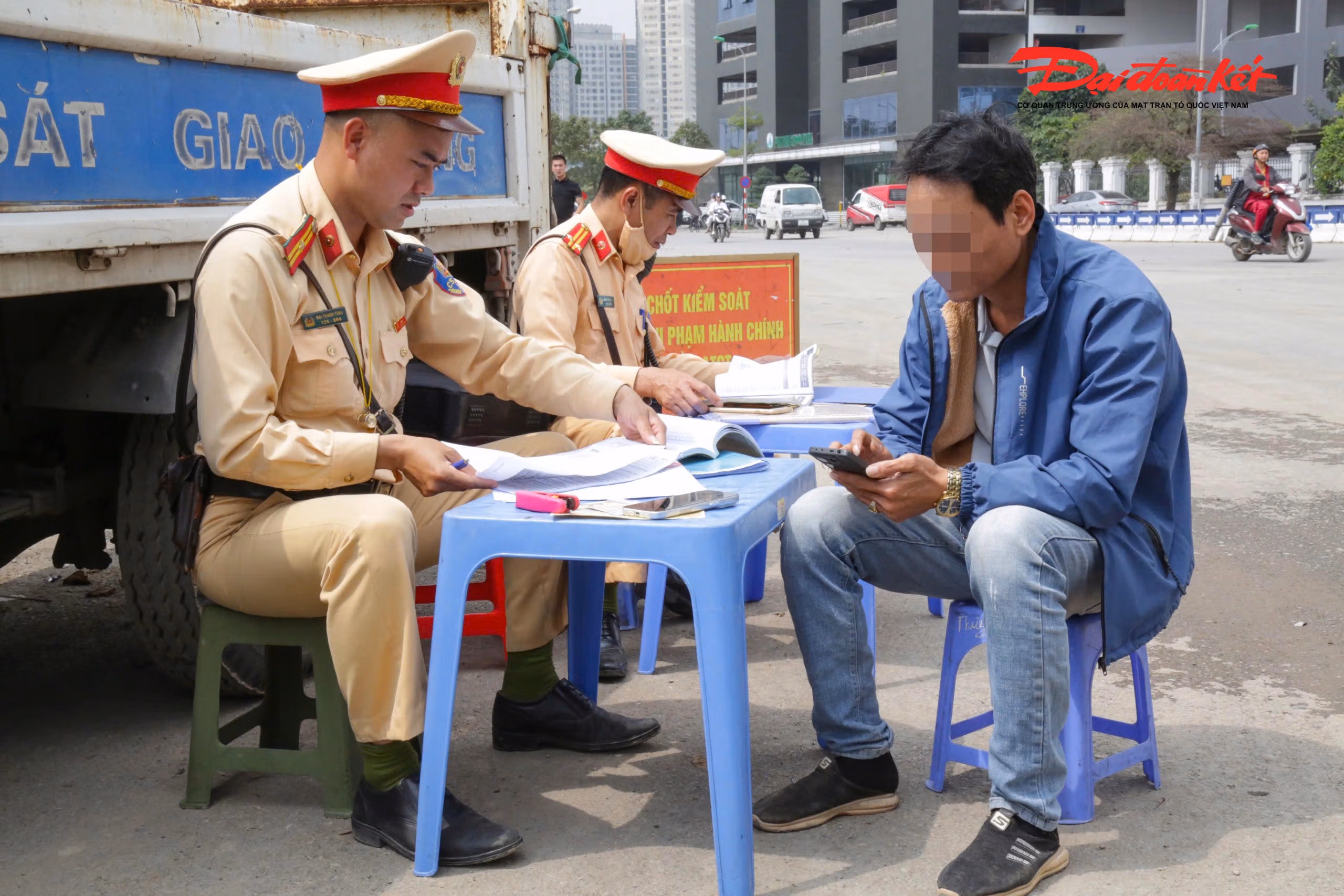Xe tải làm rơi vãi bùn đất gây trơn trượt, CSGT Hà Nội lập tức vào cuộc xử lý