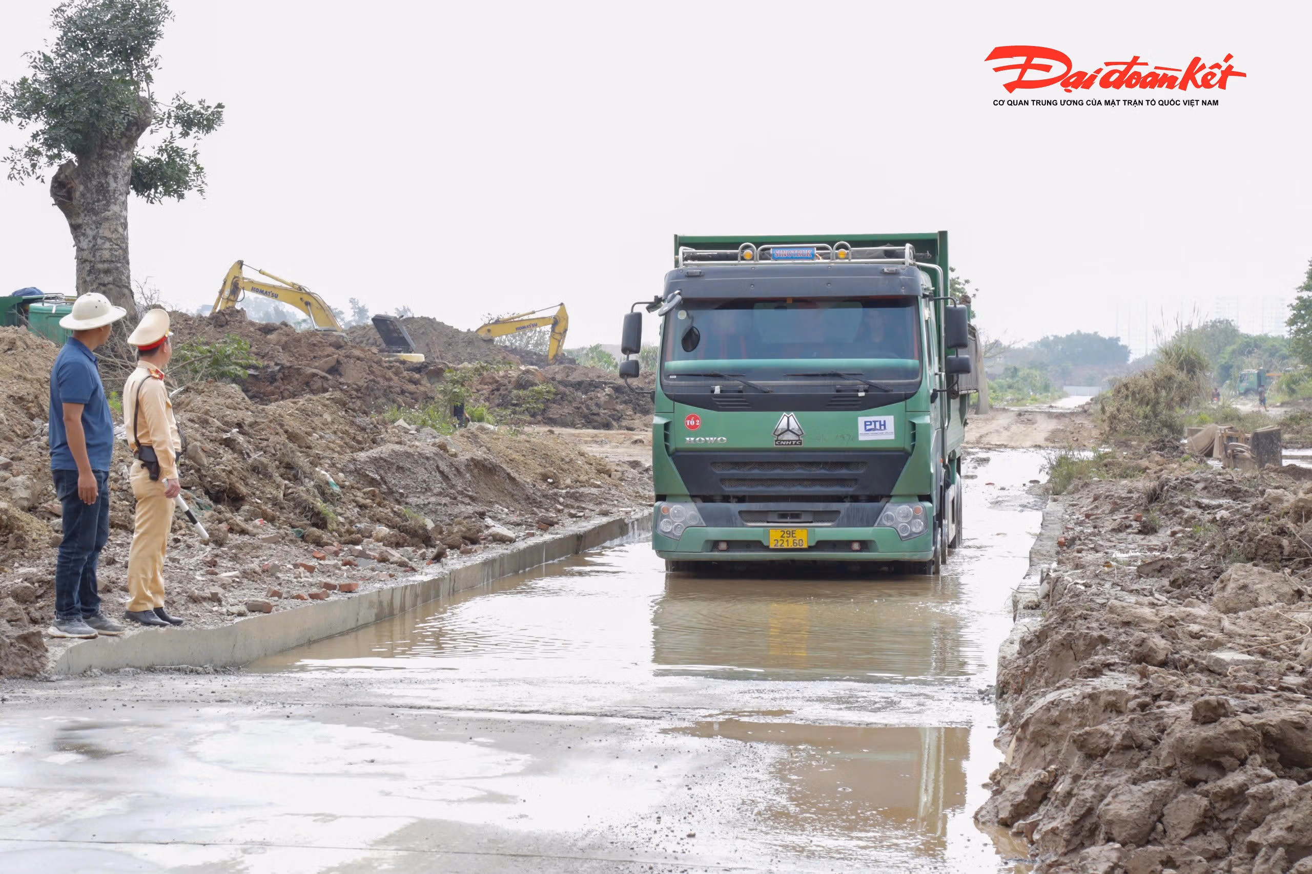 Nhiều xe tải chở đất từ công trường làm rơi vãi bùn đất ra đường phố Hà Nội, khiến mặt đường trơn trượt, ảnh hưởng an toàn giao thông. Trong sáng 16/3, lực lượng CSGT đã kiểm tra, xử lý các tài xế vi phạm và yêu cầu công trường khắc phục tình trạng này.