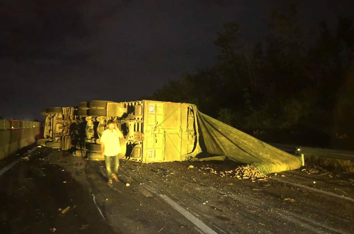 Theo đó, lúc 0h19 ngày 10/11, tại km 80+900 trên cao tốc Đà Nẵng - Quảng Ngãi, đoạn qua huyện Núi Thành, tỉnh Quảng Nam, xảy ra vụ tai nạn giao thông (TNGT) giữa xe tải BKS: 82H-00236 và xe tải BKS: 29H-79992. Cú va chạm mạnh, khiến 1 người bị thương, 2 xe tải hư hỏng. Riêng xe tải BKS: 82H-00236 bị lật ngang đường, chắn hết phần đường xe chạy gây tắc đường hướng Đà Nẵng - Quảng Ngãi.