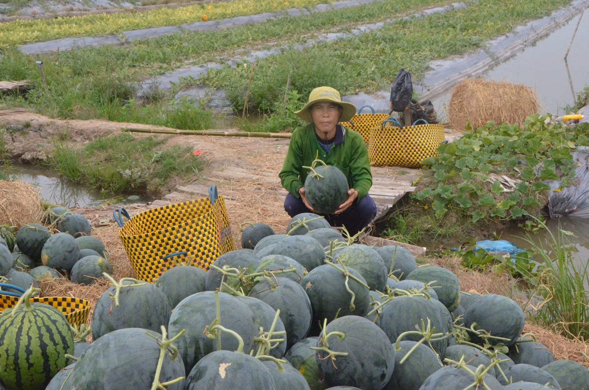 Xóm trồng dưa hấu ở Bạc Liêu vào vụ Tết
