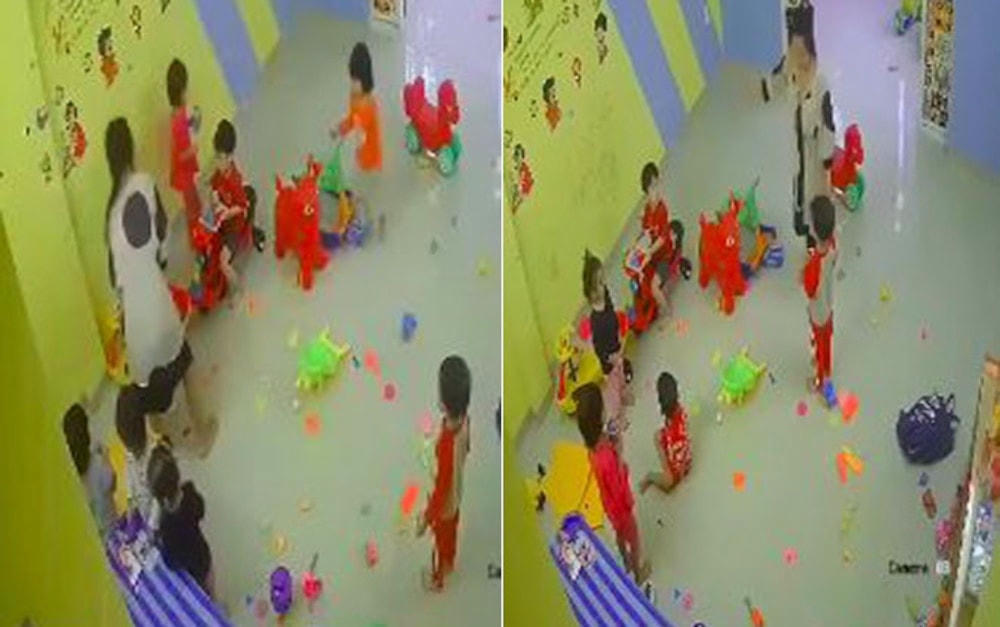 Đoạn clip cho thấy một cô giáo đã liên tục có những hành vi bạo lực với trẻ, đáng chú ý, cô giáo này được cho là hiệu trưởng của trường.