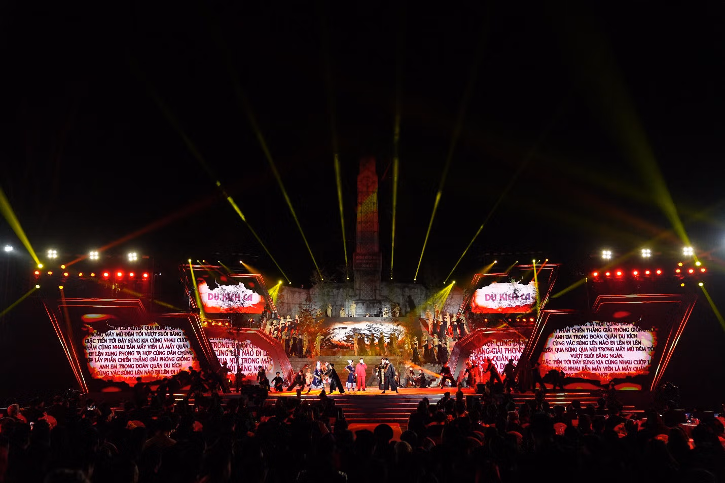 Tại 4 điểm cầu có có sự tham gia của hơn 800 diễn viên chuyên nghiệp và không chuyên, trong đó, tại điểm cầu Cao Bằng là hơn 350 người. Chương trình với 3 chương: