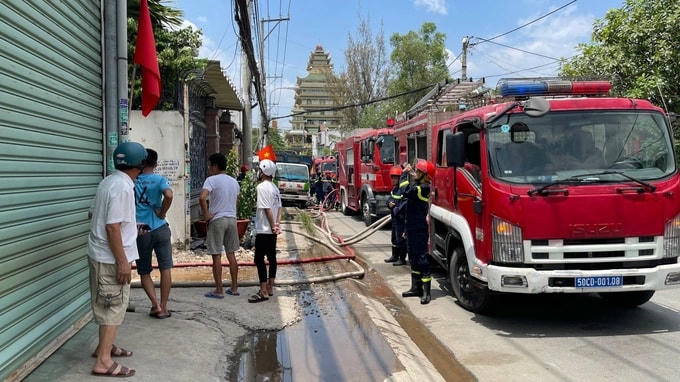 Nhận tin báo từ người dân, Đội Cảnh sát phòng cháy chữa cháy và cứu hộ cứu nạn khu vực 3 (Phòng PC07, Công an TPHCM) đã điều động hàng chục cán bộ, chiến sĩ cùng nhiều phương tiện chuyên dụng đến hiện trường dập lửa, ứng cứu người dân.