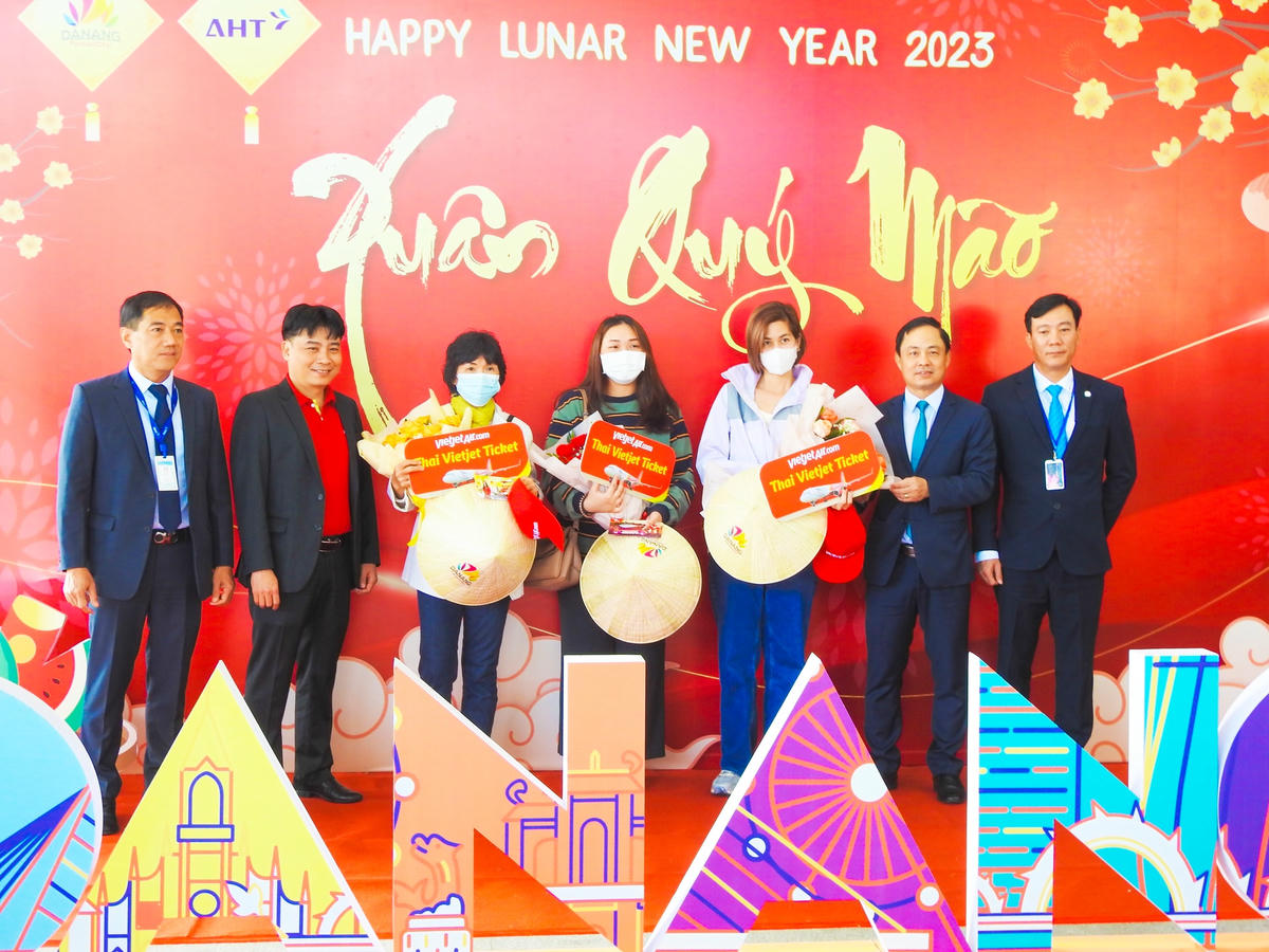 Sáng 22/1 (mồng 1 Tết Nguyên đán Quý Mão), Sở Du lịch Đà Nẵng, Cảng vụ hàng không miền Trung, Cảng hàng không quốc tế Đà Nẵng, Công ty CP khai thác nhà ga quốc tế Đà Nẵng; đã tổ chức chào đón 100 du khách quốc tế đầu tiên trên chuyến bay VZ964 khởi hành từ Bangkok (Thái Lan) “xông đất” TP trong ngày đầu tiên của năm mới