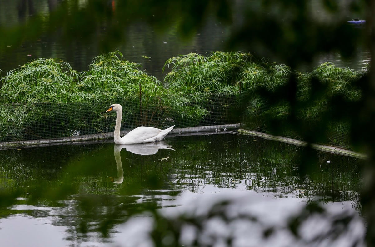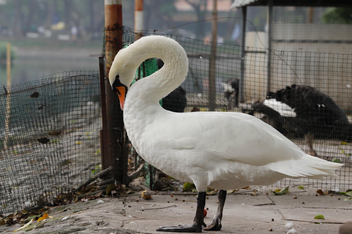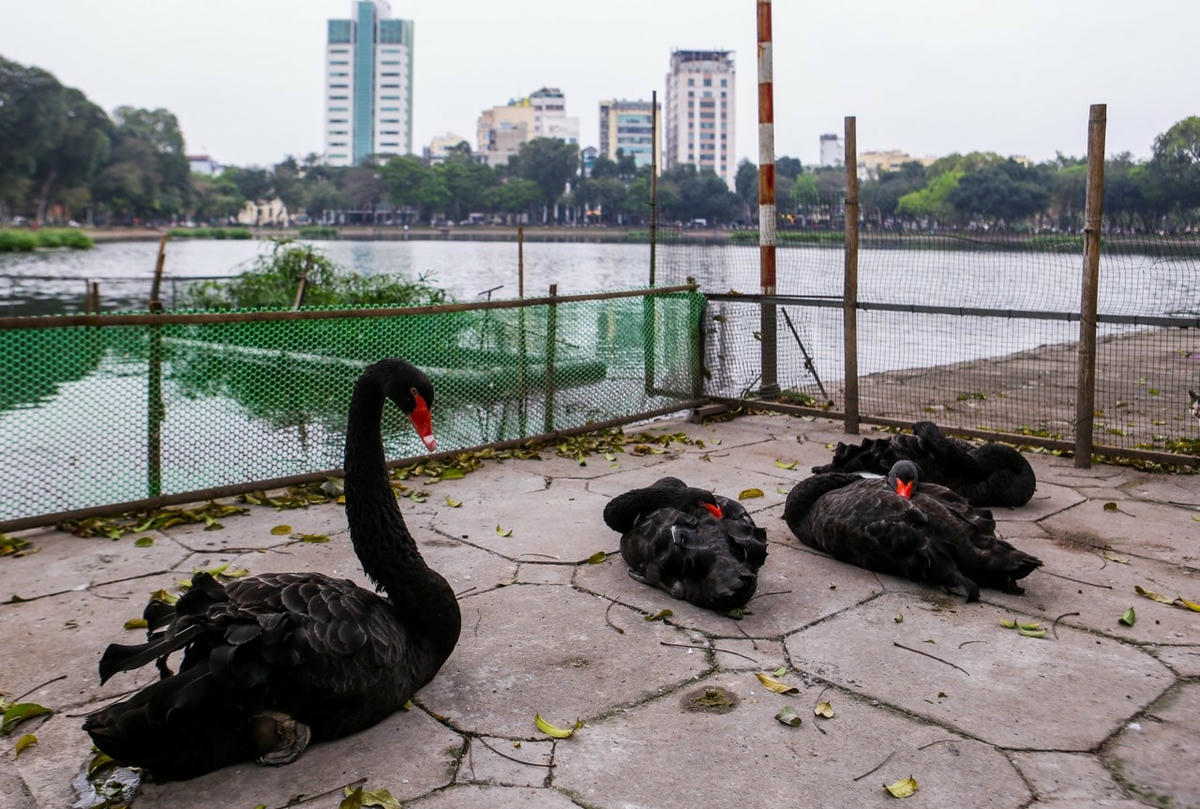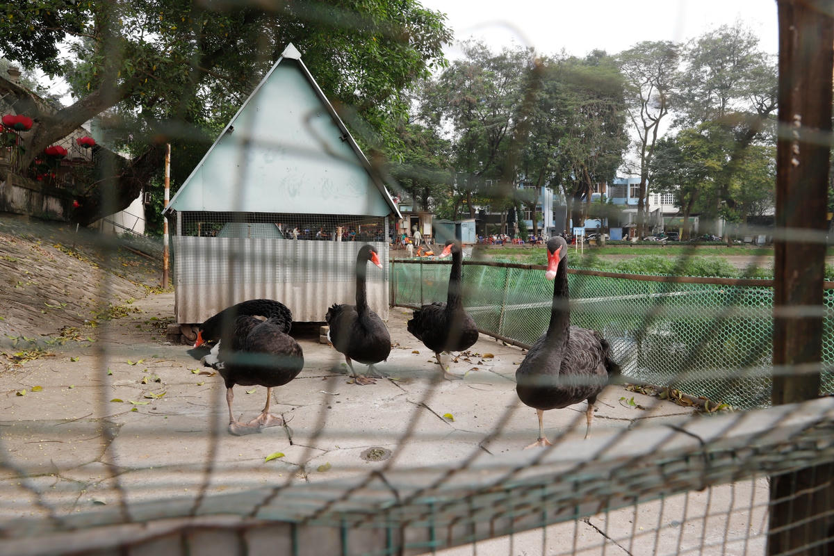 Sau 5 năm nuôi thí điểm ở hồ Thiền Quang (Hà Nội), 12 con thiên nga hiện chỉ còn lại 6 con còn sống đang được nuôi trong hàng rào được quây bằng sắt.