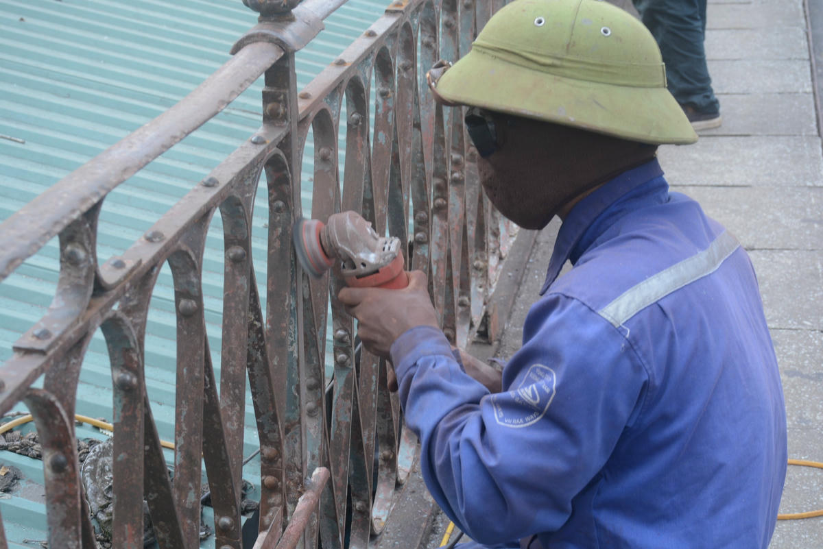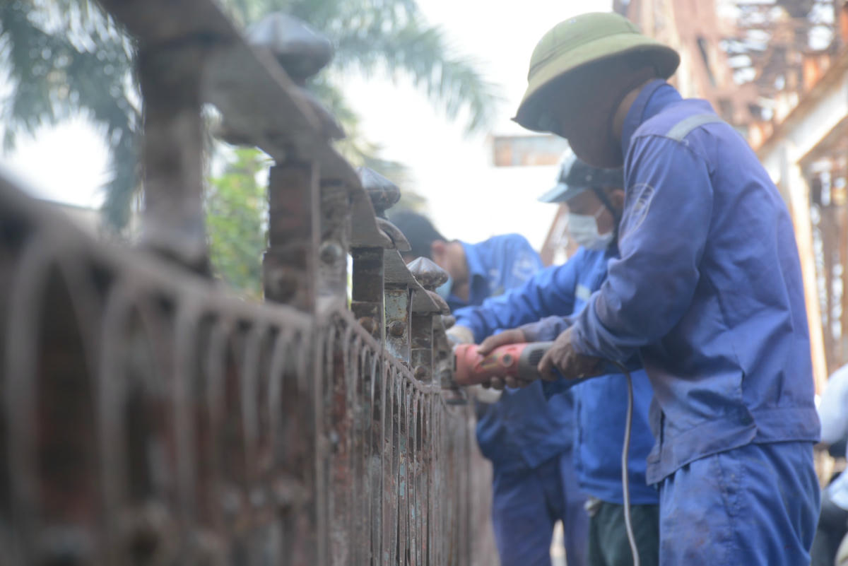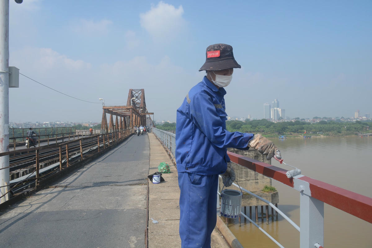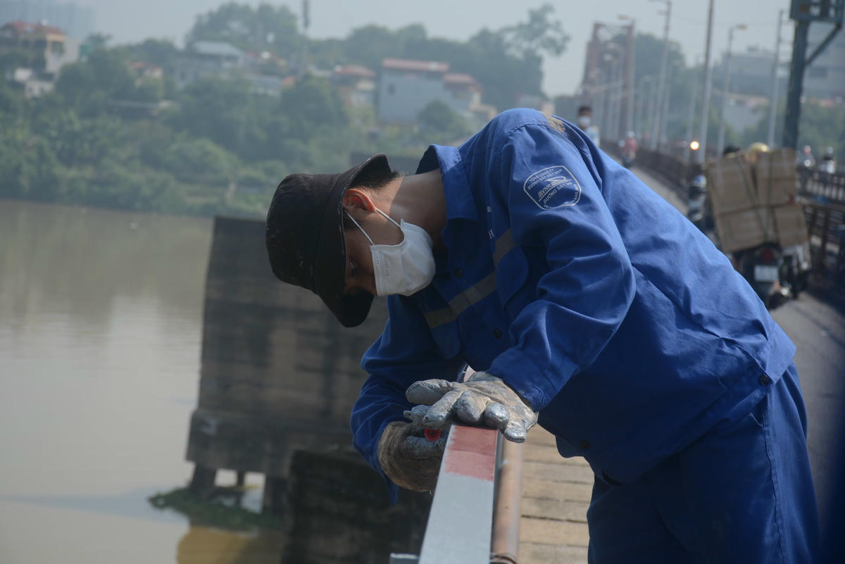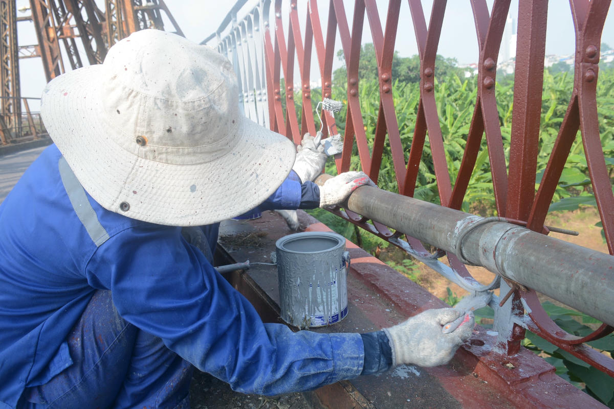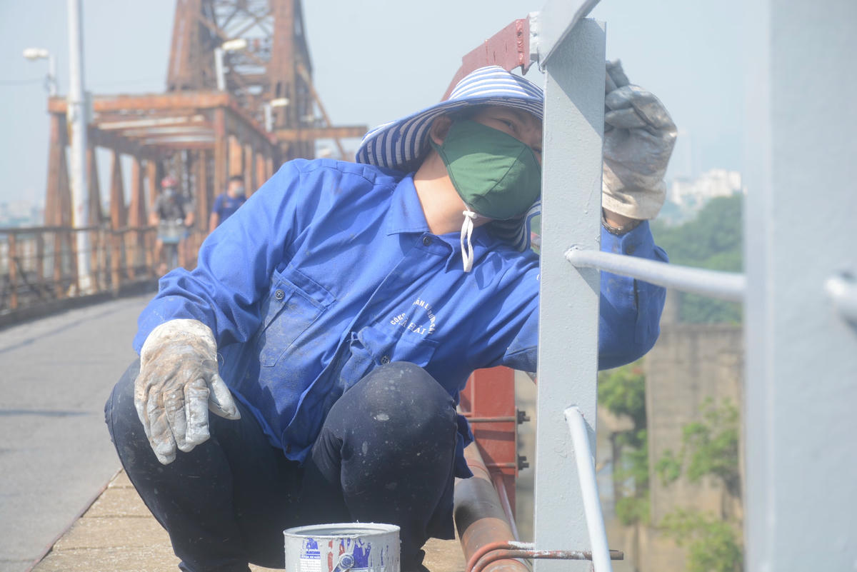 Sau 120 năm đưa vào khai thác, kết cấu của cầu Long Biên dần xuống cấp được duy tu, bảo dưỡng định kì. Hiện đơn vị thi công đang tiến hành sơn, sửa 2.000 m2 lan can cầu.