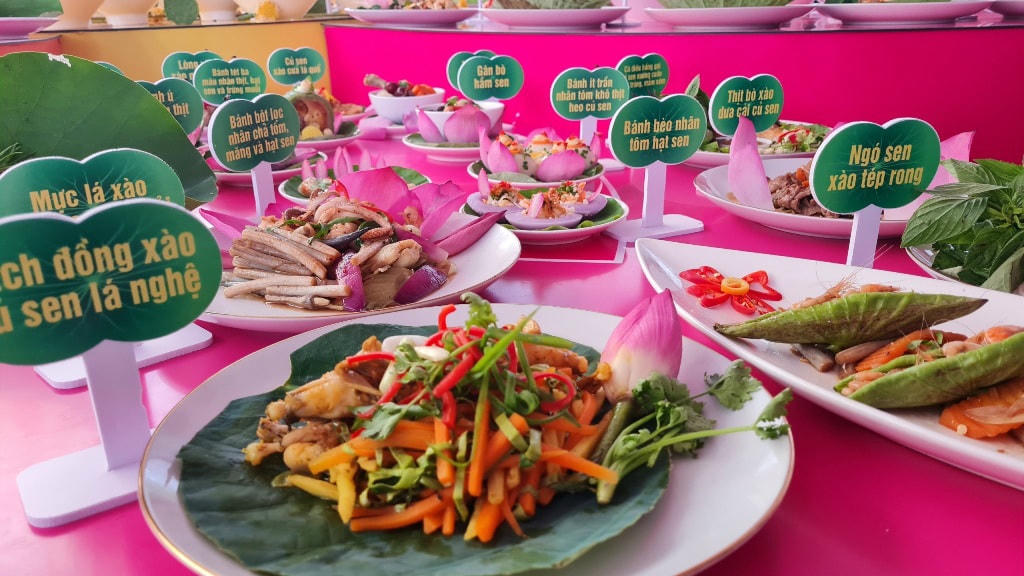 200 món ăn, thức uống được chế biến từ nguyên liệu từ sen như: Củ sen, ngó sen, hạt sen, lá sen, tim sen… vừa được Tổ chức Kỷ lục Việt Nam xác lập, đồng thời xác lập kỷ lục thế giới.