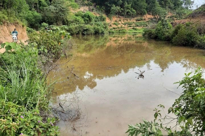 Khi đi qua đập nước cách nhà khoảng 500 m, xe máy không may bị trượt xuống đập khiến 3 mẹ con chị T. rơi xuống nước, 2 mẹ con tử vong, 1 bé may mắn thoát nạn.