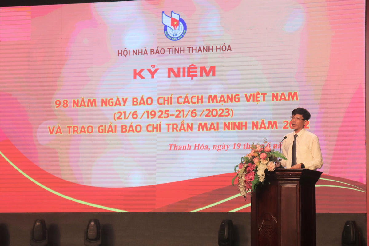 Sáng 19/6, tại TP Thanh Hóa, Hội Nhà báo tỉnh đã tổ chức lễ kỷ niệm 98 năm Ngày Báo chí cách mạng Việt Nam (21/6/1925 – 21/6/2023) và trao Giải Báo chí Trần Mai Ninh năm 2022.