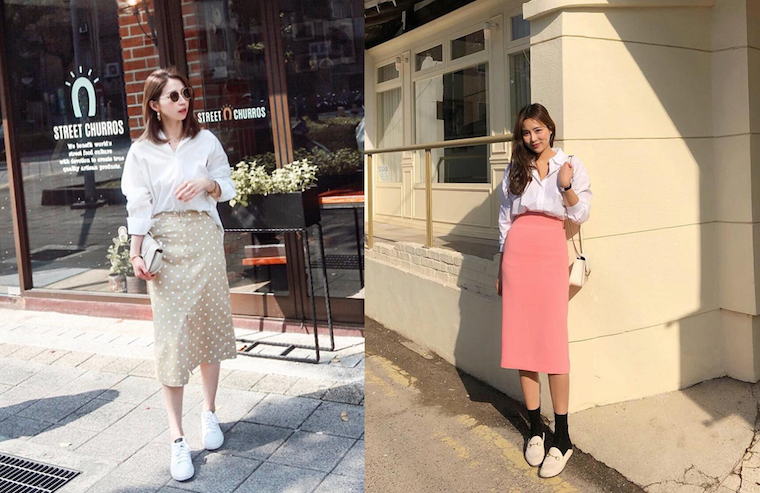 1. Chân váy suông + áo sơ mi