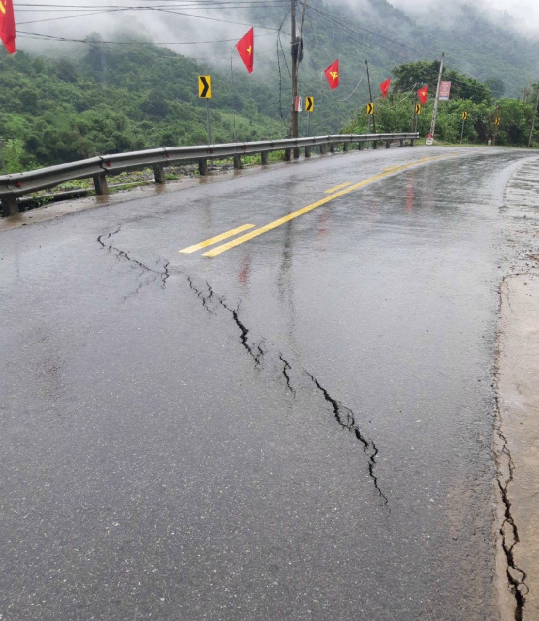 Ngoài ra, cũng theo ông Rê, do ảnh hưởng của mưa lũ, tuyến Quốc lộ 7A tại km 194+50 đoạn qua bản Hòm, xã Hữu Kiệm (Kỳ Sơn) đã xuất hiện một vết nứt chạy ngang mặt đường. Điểm nứt đó, một bên là sông sâu, một bên là núi cao. Hiện nay ở Kỳ Sơn thời tiết đã nắng ráo, nhưng nếu trời có mưa to thì nguy cơ cao sẽ bị sạt lở cắt ngang mặt đường bất cứ lúc nào.