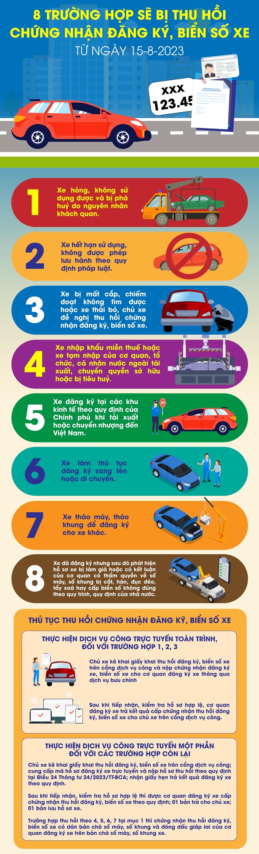 8 trường hợp thu hồi chứng nhận đăng ký, biển số xe từ 15/8/2023