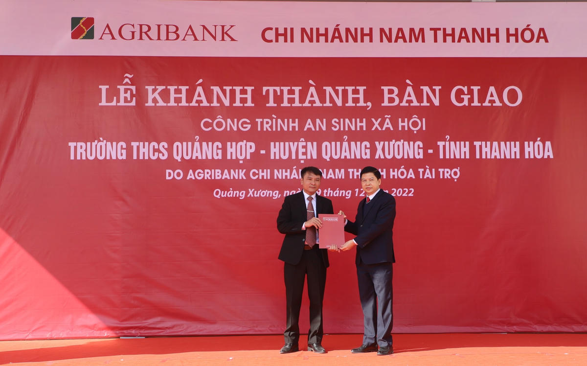 Ngày 19/12/2022, Lễ khánh thành, bàn giao công trình Trường THCS Quảng Hợp với 100% nguồn tài trợ từ Ngân hàng Nông nghiệp & Phát triển Nông thôn Việt Nam đã được diễn ra tại Thanh Hóa. Công trình nằm trong chuỗi hoạt động an sinh xã hội (ASXH), hướng tới chào mừng kỷ niệm 35 năm thành lập Ngân hàng Nông nghiệp & Phát triển Nông thôn Việt Nam (Agribank) với tổng kinh phí 6 tỷ đồng.