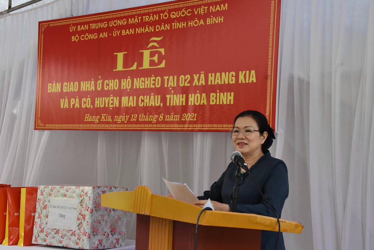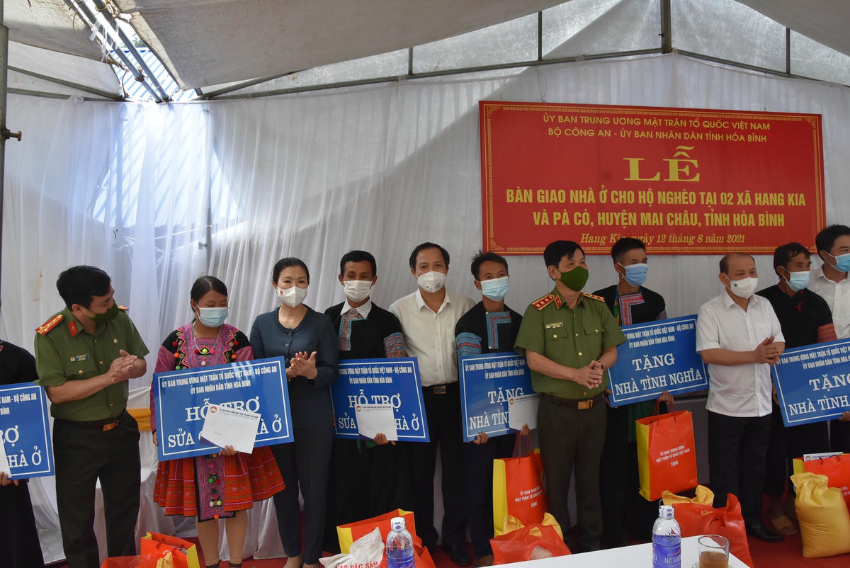 Chúng tôi theo chân đoàn công tác của bà Trương Thị Ngọc Ánh, Phó Chủ tịch UBTƯ MTTQ Việt Nam; Thượng tướng Nguyễn Văn Sơn, Thứ trưởng Bộ Công an và lãnh đạo tỉnh Hoà Bình về thăm 2 xã Hang Kia và Pà Cò để bàn giao nhà cho các hộ nghèo, khó khăn về nhà ở.