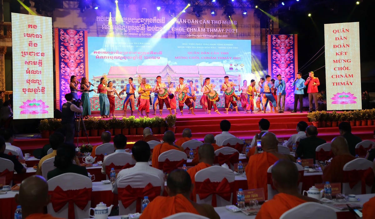 Tối 10/4, UBND thành phố Cần Thơ phối hợp với Bộ Chỉ huy Quân sự TP Cần Thơ, Học viện Phật giáo Nam tông Khmer và Bệnh viện đa khoa Hòa Hảo Medic Cần Thơ tổ chức chương trình Tết Quân Dân mừng Tết cổ truyền Chôl Chnăm Thmây 2021.