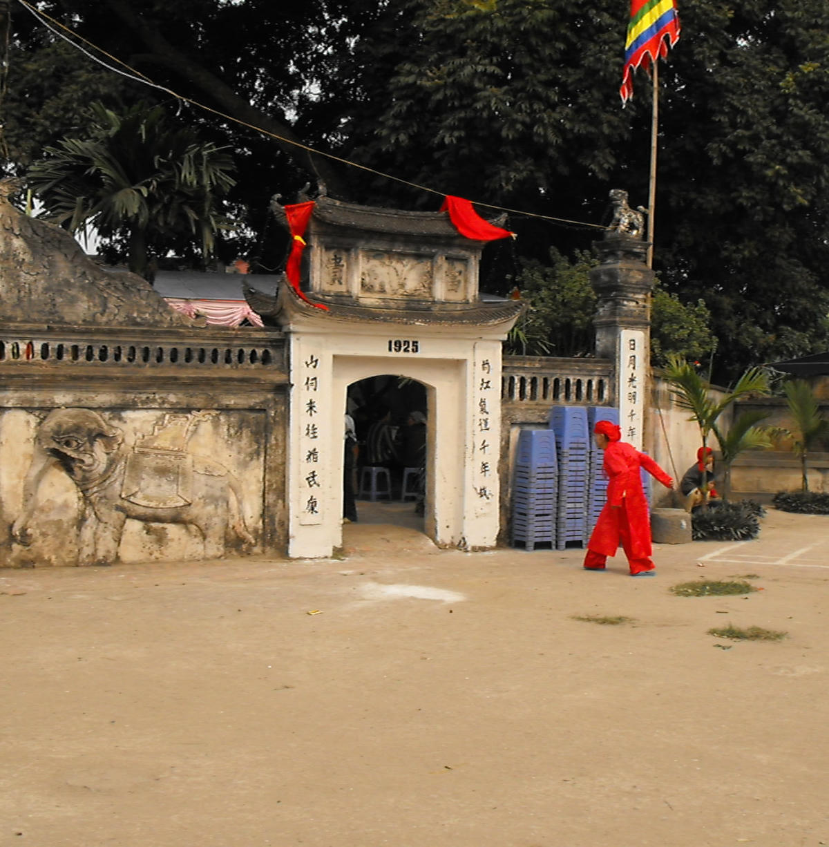 Toàn người không quen, tôi mới có bốn hay năm tuổi gì đó, nhát lắm. Ngồi vào mâm thì bọn trẻ nhép xung quanh đã đứa nào đứa nấy nhờn mép. Có người “quản” mâm trẻ con thật, nhưng người ta cũng mải chăm lo cho cháu chắt họ hàng người ta, ai hơi đâu mà để ý đến tôi.