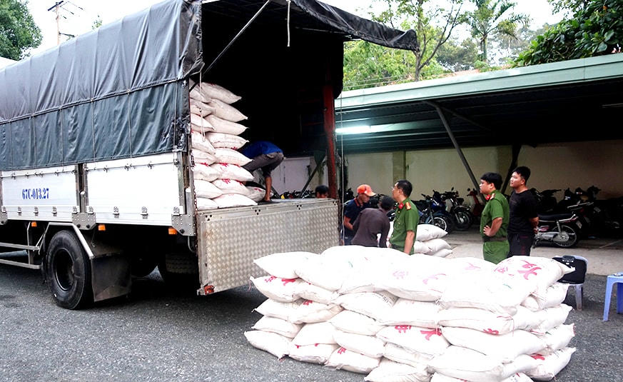 Cụ thể, vào khoảng 2 giờ 30 phút đêm ngày 8/8, trên Quốc lộ 91 thuộc địa phận phường Mỹ Xuyên, thành phố Long Xuyên, tổ công tác thuộc Phòng Cảnh sát giao thông đường bộ Công an tỉnh phát hiện xe tải biển kiểm soát 67C-013.27 do tài xế Nguyễn Văn Thơi, sinh năm 1991, trú tại phường Mỹ Thới, thành phố Long Xuyên điều khiển có biểu hiện nghi vấn nên dừng phương tiện kiểm tra. Qua kiểm tra lực lượng đã phát hiện trên xe có chở 360 bao (50kg/bao) đường cát nhãn mác nước ngoài, trọng lượng khoảng 18 tấn.