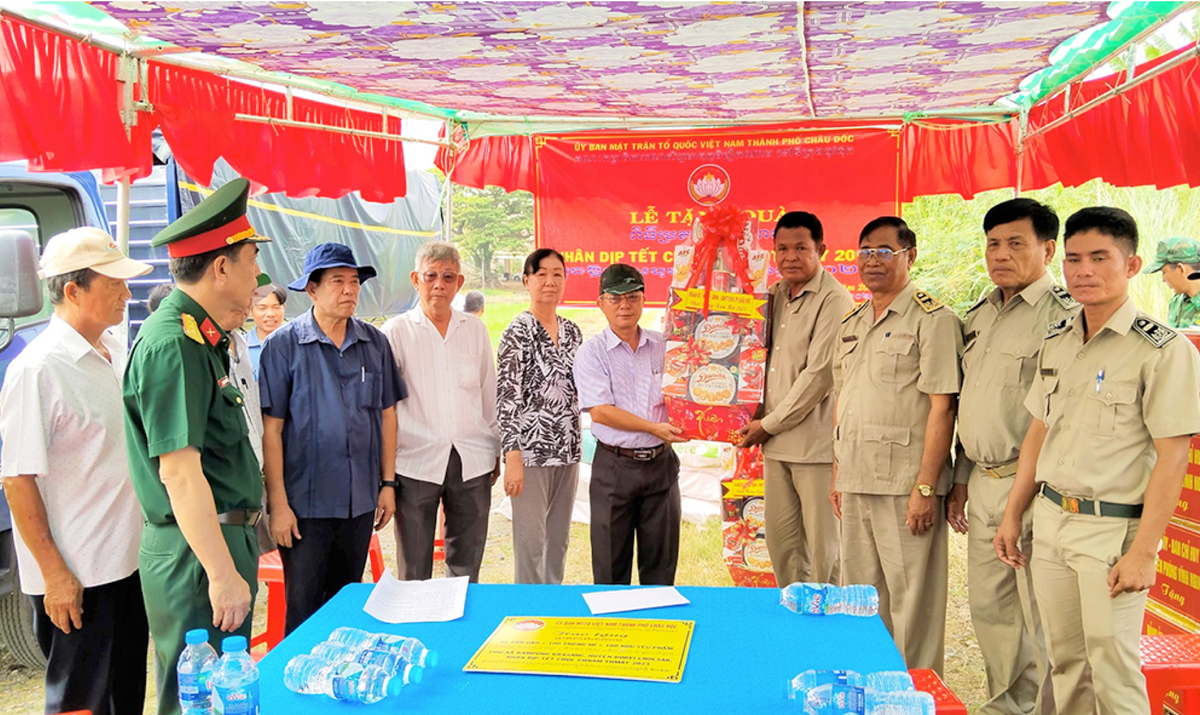 Bên cạnh đó lãnh đạo Mặt trận tỉnh còn tham gia các đoàn thăm, chúc mừng Chol Chnam Thmay tại các tỉnh giáp biên thì MTTQ các huyện biên giới như: An Phú, Tri Tôn, thị xã Tịnh Biên, thành phố Châu Đốc và thị xã Tân Châu đã tổ chức Đoàn thăm hỏi, chúc Tết chính quyền, Hội Khmer-Việt Nam và trao tặng quà cho người dân Campuchia gặp khó khăn ở các huyện giáp biên của hai tỉnh Kandal và Takeo.