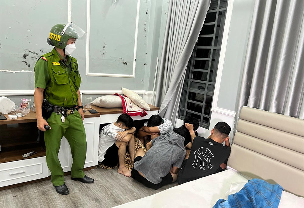 Tang vật thu giữ trong căn hộ gồm 2 dĩa sứ có chứa chất bột màu trắng nghi là ma tuý, 2 bọc nylon bên trong có chứa 4 viên nén màu xanh và 2 bọc nylon chứa chất tinh thể màu trắng nghi là ma tuý, cùng nhiều dụng cụ âm thanh, ánh sáng sử dụng cho việc “bay, lắc” của các đối tượng. Qua test nhanh, có 14 đối tượng dương tính với chất ma tuý.