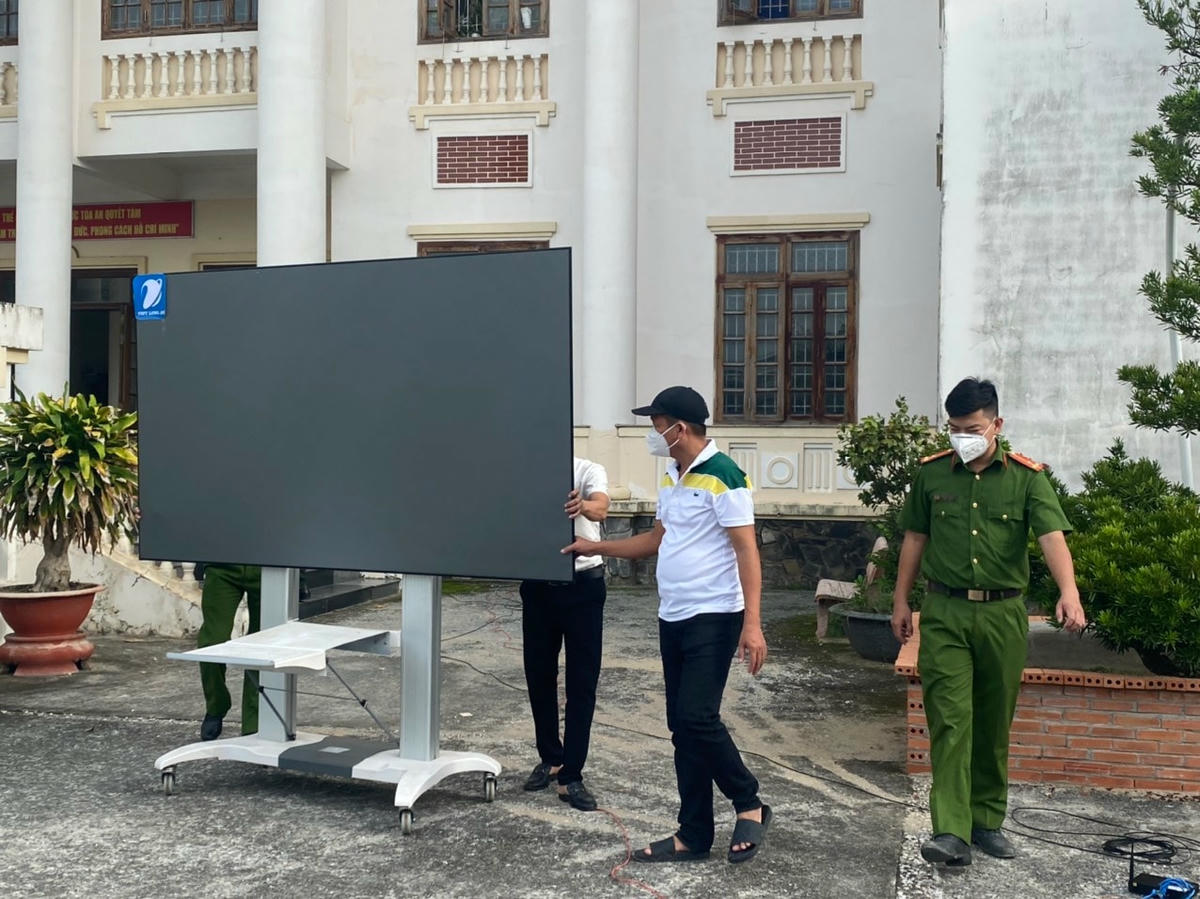 Đúng 7 giờ, xe chở nhóm bị cáo đã vào sân tòa. Các bị cáo được đưa vào tòa bằng cửa sau. Trong khi đó nhiều phóng viên, nhà báo được bố trí khu vực riêng để tác nghiệp. Dự kiến phiên tòa sẽ diễn ra lúc 8 giờ. Sau đây là những hình ảnh đầu tiên về phiên tòa này mà phóng viên vừa ghi nhận.