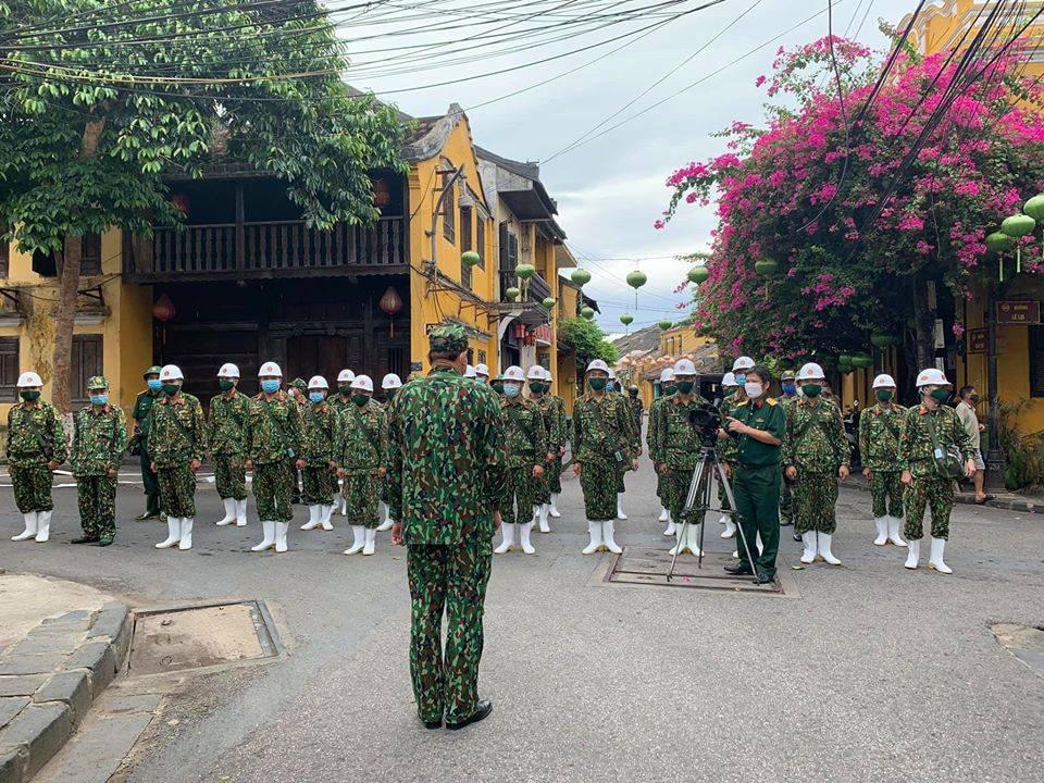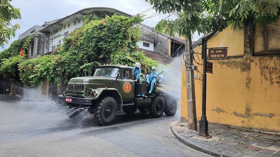 Theo đó, từ 8h đến 10h, cùng ngày, 30 quân nhân cùng 6 xe chuyên dụng của quân sự triển khai phun hóa chất khử trùng ở khu vực khối phố An Hội, khu phố cổ Hội An (phường Minh An); chùa Sư Nữ, Phong Thọ (phường Sơn Phong) và Bệnh viện Đa khoa Hội An.