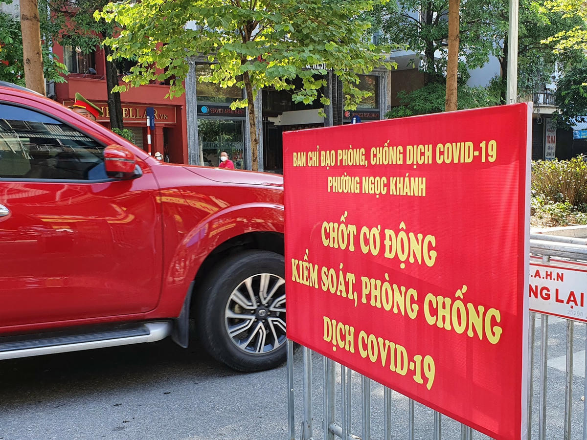 Từ 3h sáng, lực lượng chức năng thuộc phường Ngọc Khánh, quận Ba Đình đã tiến hành chốt chặn ngăn ngừa dịch Covid-19, kiểm soát các phương tiện hướng vào khu vực trung tâm thành phố.