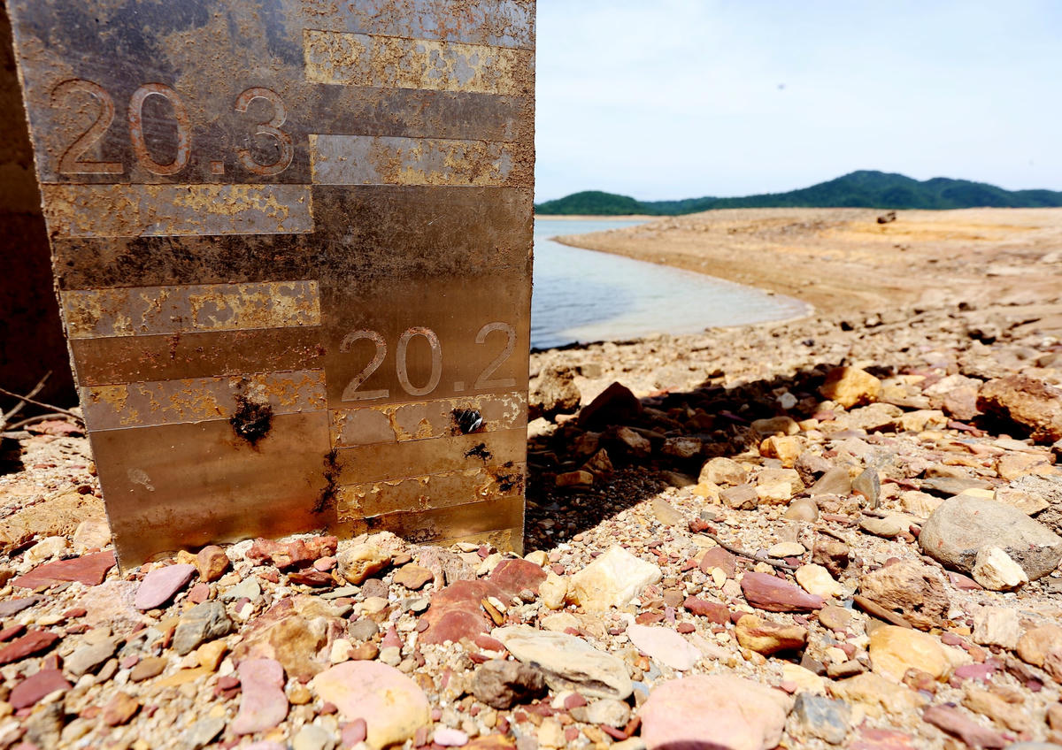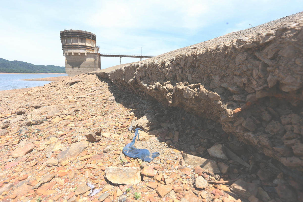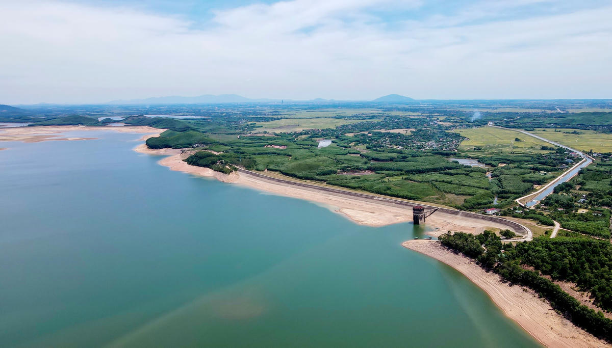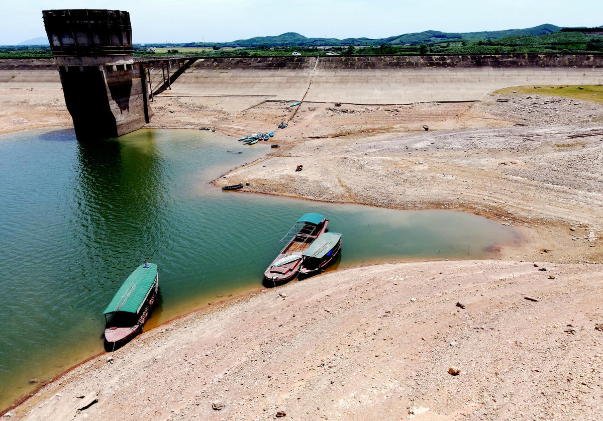 [Ảnh] Cận cảnh hồ Kẻ Gỗ cạn trơ đáy, nguy cơ xuống mực nước chết