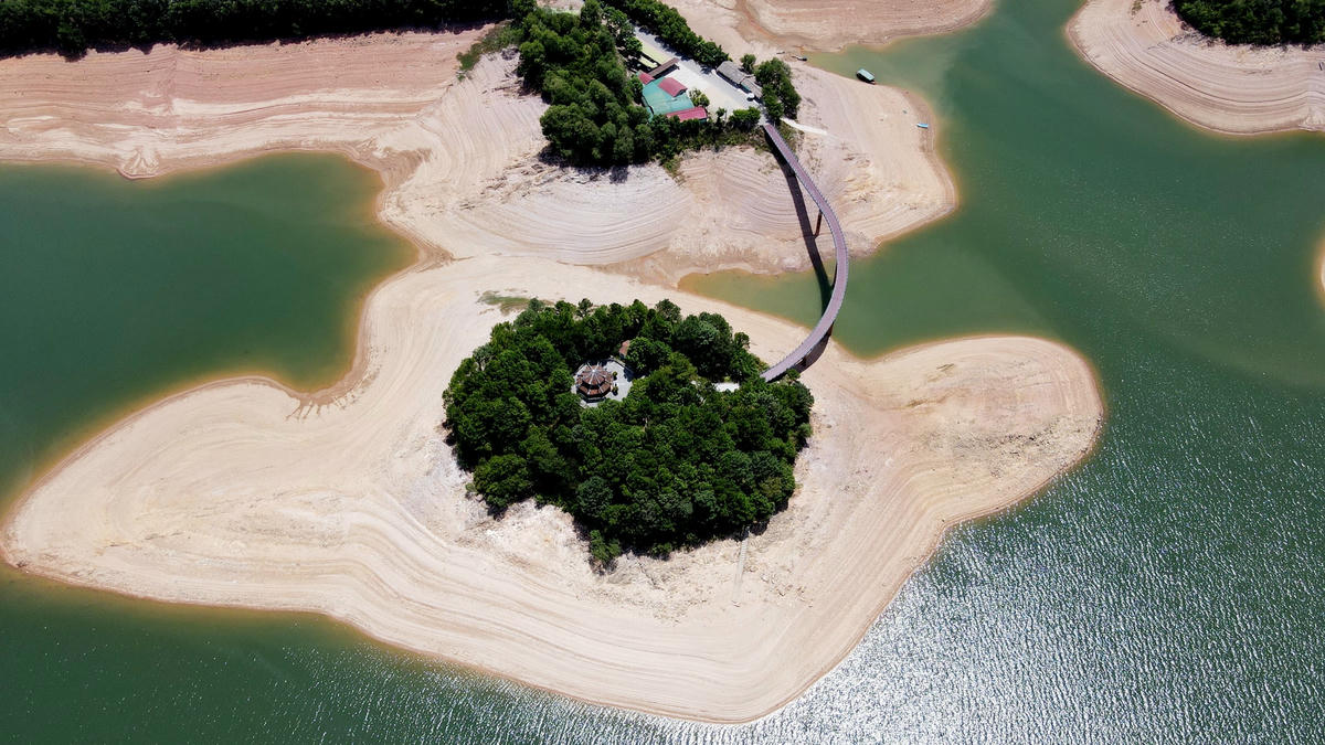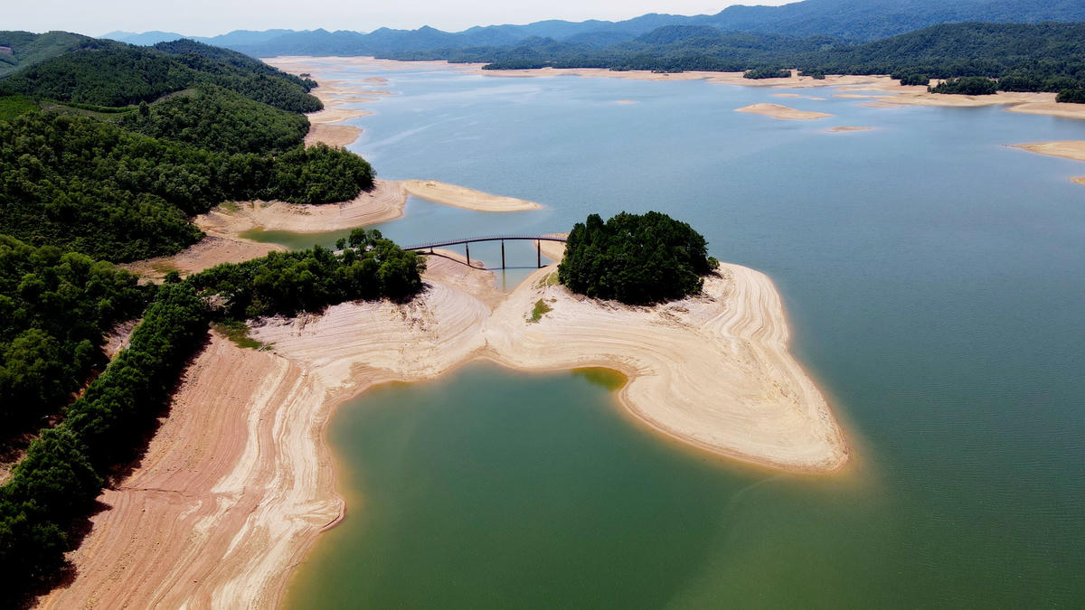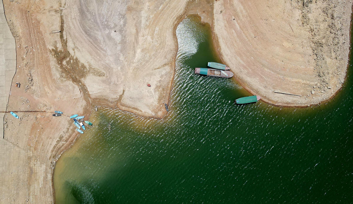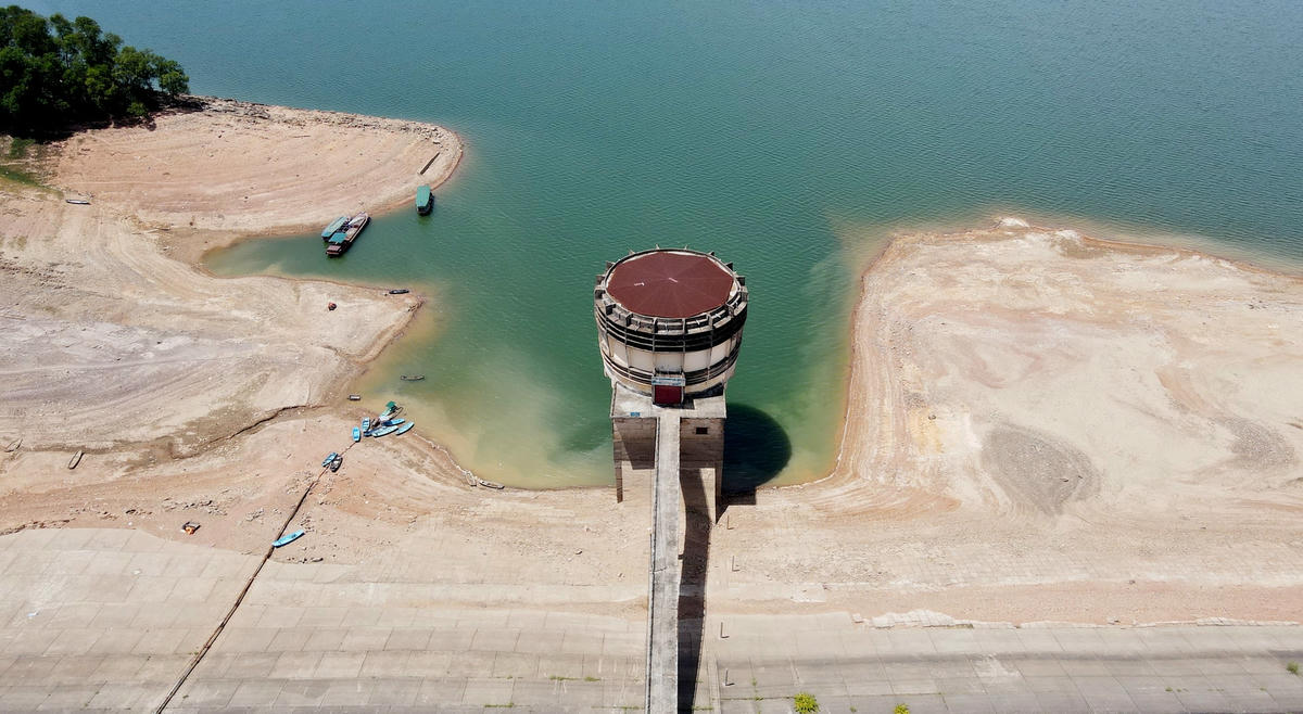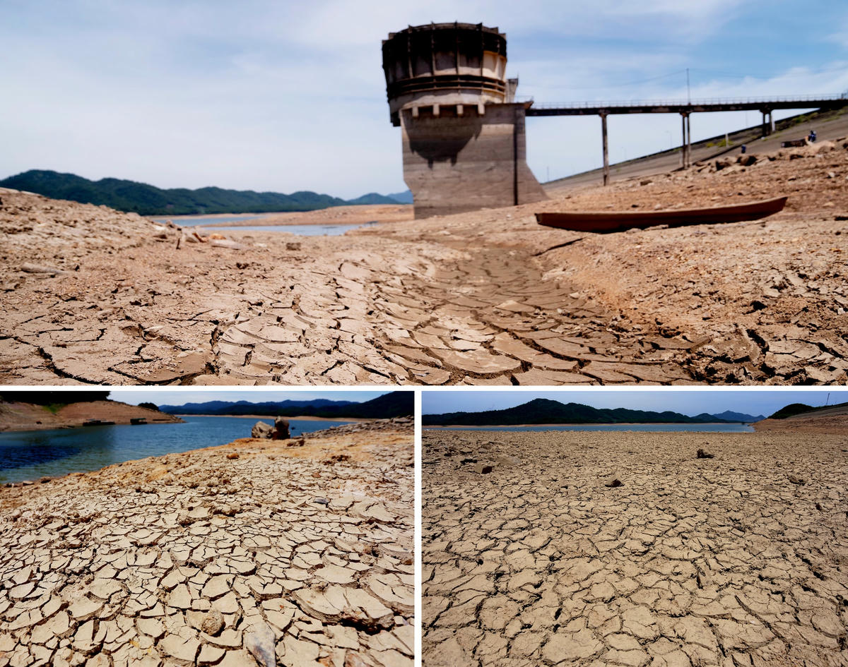 [Ảnh] Cận cảnh hồ Kẻ Gỗ cạn trơ đáy, nguy cơ xuống mực nước chết