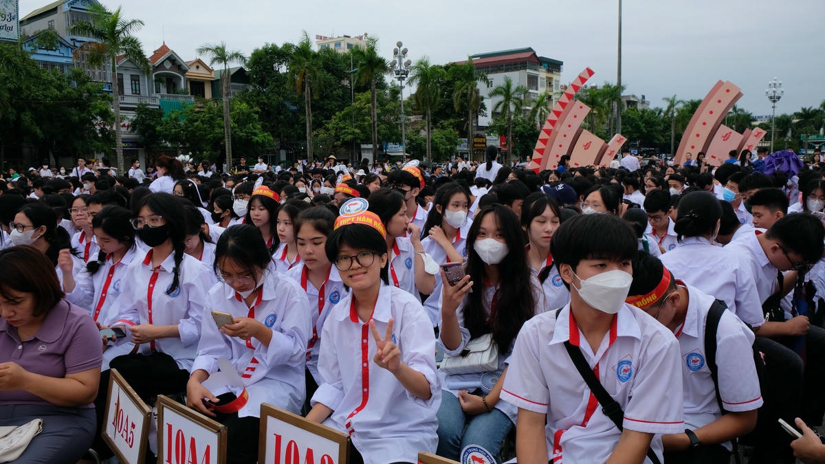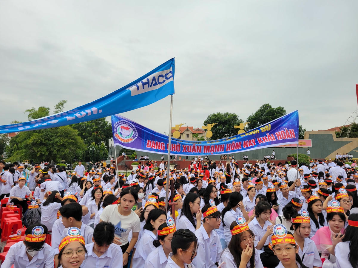 Đúng 8h, hơn 8.000 học sinh ở 6 trường THPT trên địa bàn TP Thanh Hóa đều đã có mặt tại điểm cầu Quảng trường Lam Sơn. Cùng với đó, hàng chục nghìn người dân ở các huyện cũng đã đổ về đây, tiếp sức cho Lê Xuân Mạnh thi đấu trong trận chung kết.