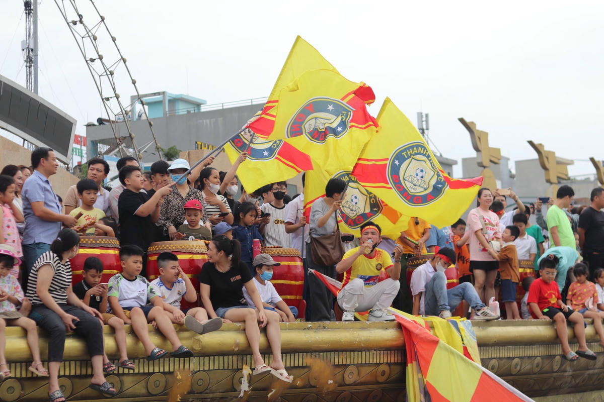 7h sáng, PV có mặt tại Quảng trường Lam Sơn khi thời gian còn hơn 1h nữa mới đến trận chung kết. Mặc dù còn khá sớm thế nhưng hàng nghìn con người đã có mặt ở đây với tay trống, tay kèn, tay phất cờ, căng băng rôn…