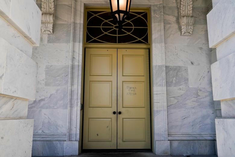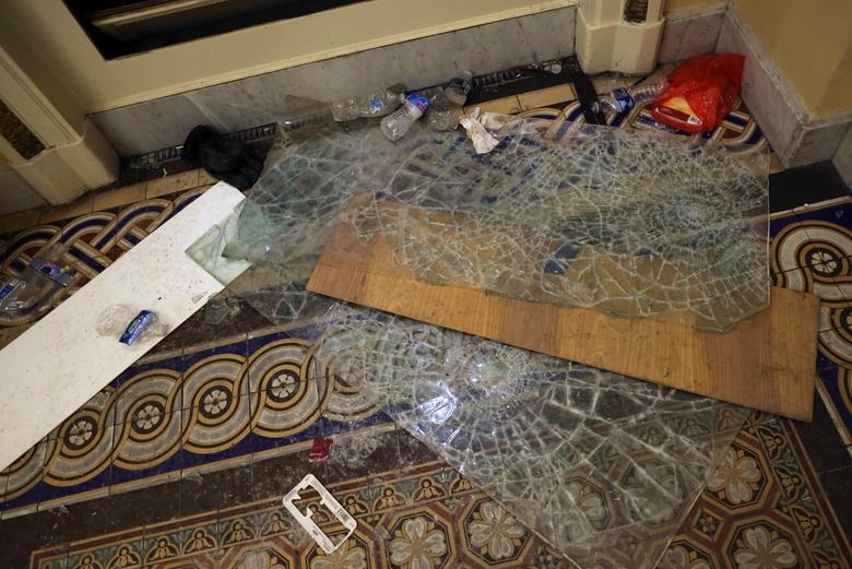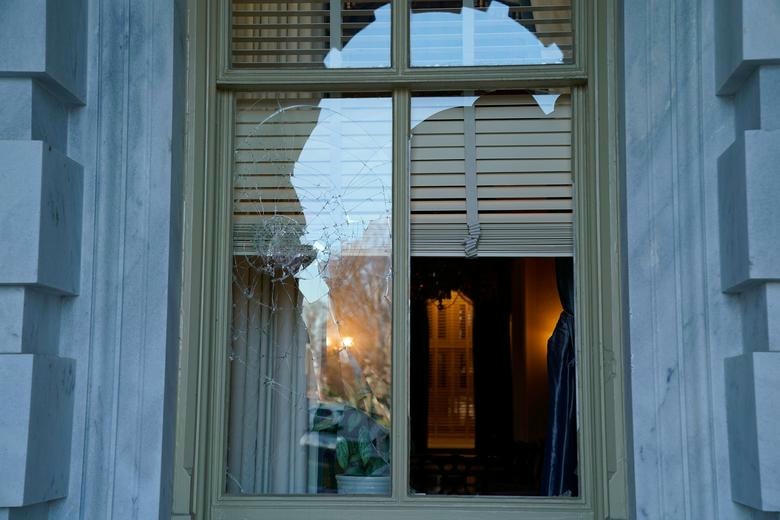Một công nhân dọn dẹp các mảnh vỡ bên ngoài điện Capitol, một ngày sau khi những người ủng hộ Tổng thống Trump xông vào tòa nhà. Ảnh: Reuters.Một lá cờ trong thùng rác tại Tòa nhà Quốc hội Mỹ. Ảnh: Reuters.Đồ đạc ngổn ngang một hành lang trong Tòa nhà Quốc hội. Ảnh: Reuters.Một chiếc mũ in khẩu hiệu "Làm cho nước Mỹ vĩ đại trở lại" nằm trong đống đổ nát bị bỏ lại ở trạm kiểm soát lối vào. Ảnh: Reuters.Một chiếc túi nhựa bảo vệ bao phủ bức tượng bán thân của Tổng thống Zachary Taylor ở điện Capitol. Ảnh: Reuters.Các lỗ đạn và hình dán trên lối vào điện Capitol. Ảnh: Reuters.Cụm từ "Sát nhân - phương tiện truyền thông" được viết trên một cánh cửa. Ảnh: Reuters.Một cánh cửa sổ bị đập vỡ. Ảnh: Reuters.Một cửa sổ bị vỡ gần phòng họp của Quốc hội. Ảnh: Reuters.Dụng cụ y tế trên một hành lang. Ảnh: Reuters.Công nhân dọn dẹp điểm kiểm tra an ninh. Ảnh: Reuters.Một công nhân làm vệ sinh bức tượng cựu Tổng thống Ronald Reagan. Ảnh: Reuters.Các tài liệu vứt đầy trên sàn nhà. Nguồn ảnh: Reuters.Đồ đạc bị lật và kính vỡ nằm trên sàn. Nguồn ảnh: Reuters.Công nhân lắp lại hàng rào trước điện Capitol. Ảnh: Reuters.